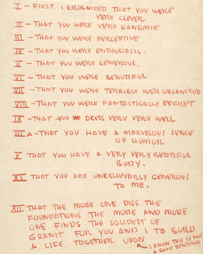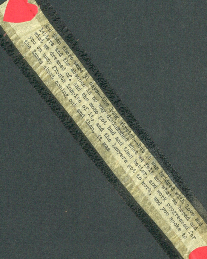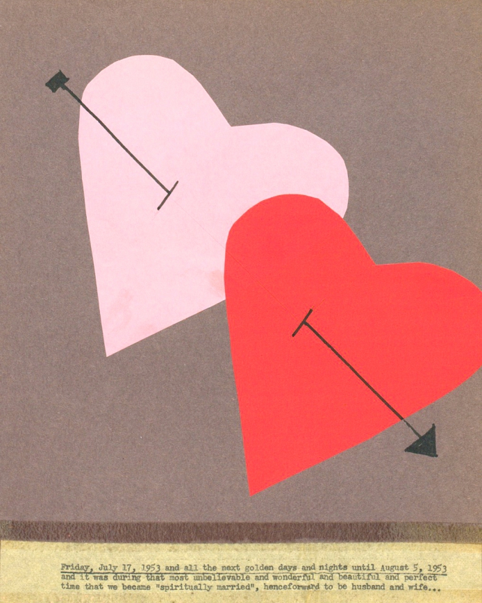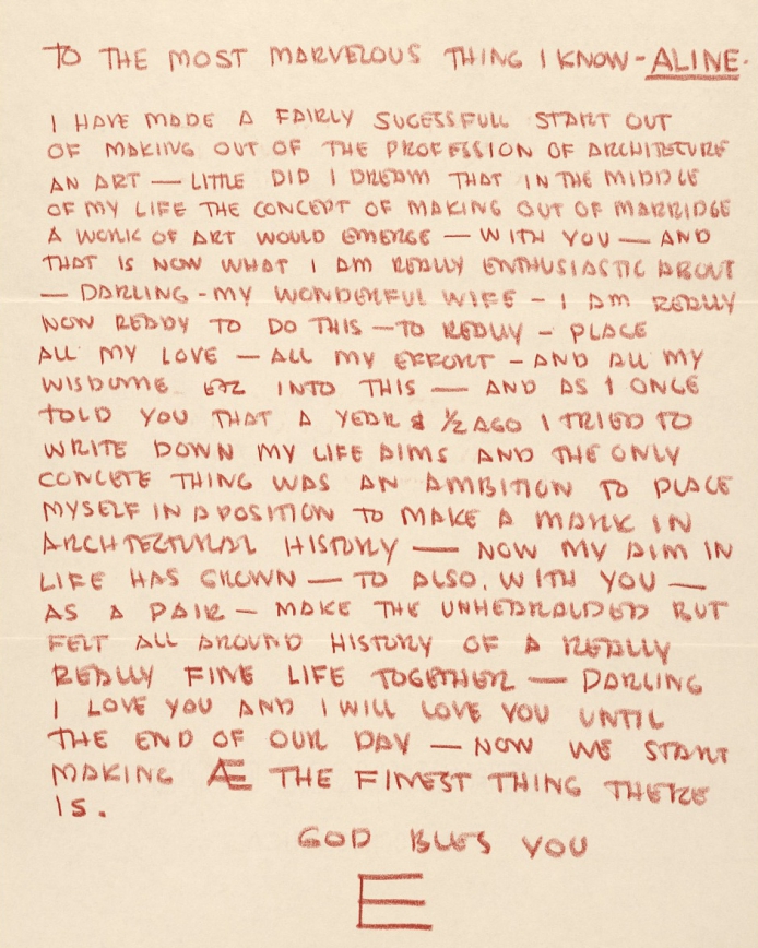 From above, Aline and Eero kiss on their honeymoon in 1954. A selection of love letters from Eero to Aline. Excerpts from ‘The Case History of a Romance’ birthday card from Aline to Eero.