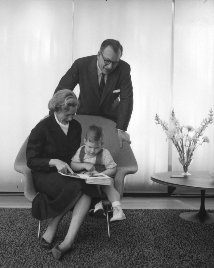 Below, Aline, Eero and son Eames in the 1950s.