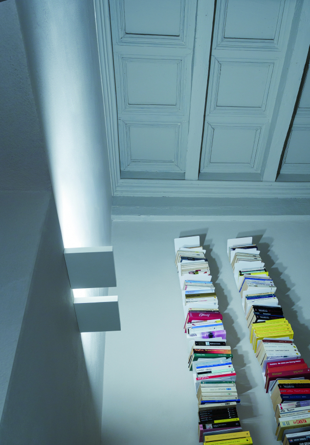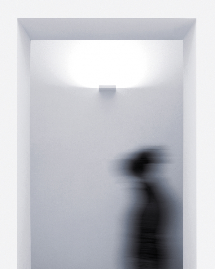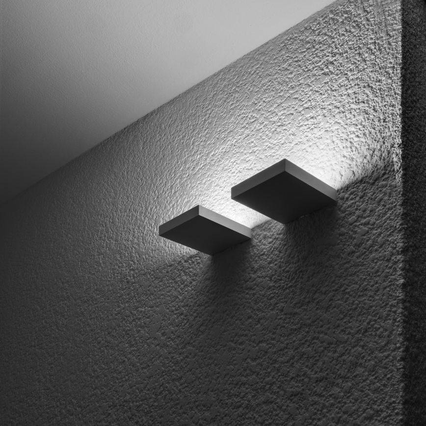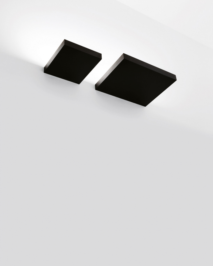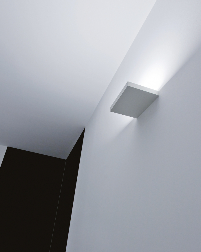 A clean, graphic, rectangular uplight. Available in matt black or white in 2 sizes.