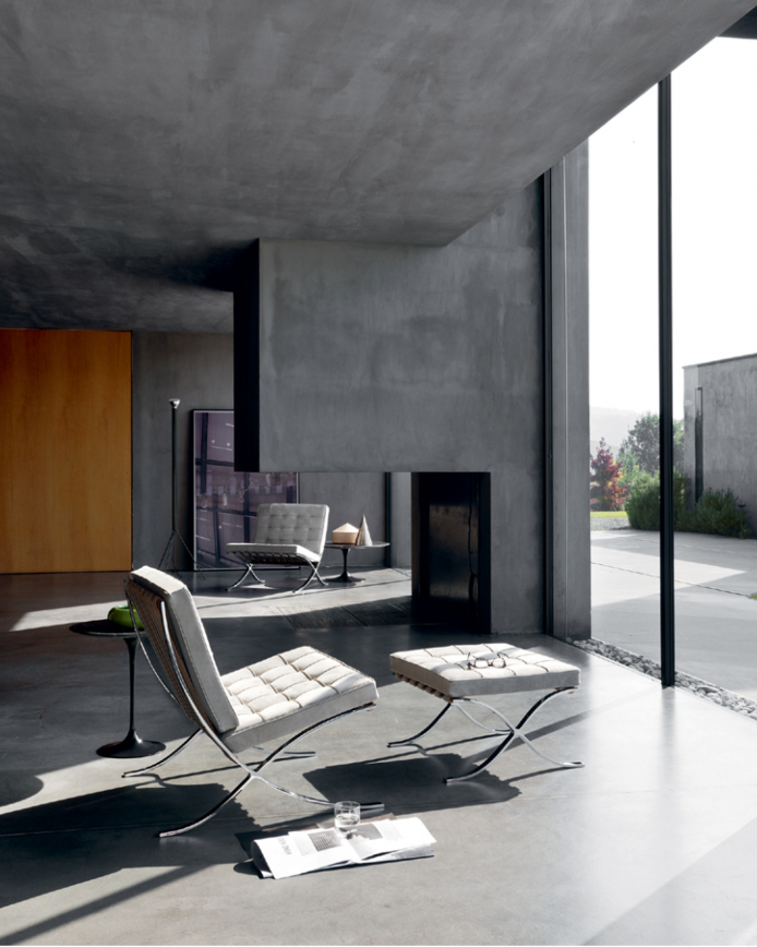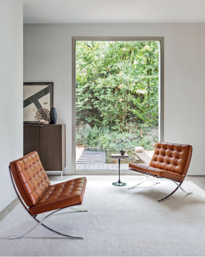 Ludwig Mies van der Rohe (1886-1969) trained in the family stonemason business in Berlin, before studying architecture. He first worked at Peter Behrens’ offices where Le Corbusier and Walter Gropius started out, setting up his own practice in 1914. His tubular steel furniture of the mid-1920s took the world by storm, and in 1929 he created the German Pavilion for the Barcelona International Exhibition, a comprehensive and enduring example of the International Style.