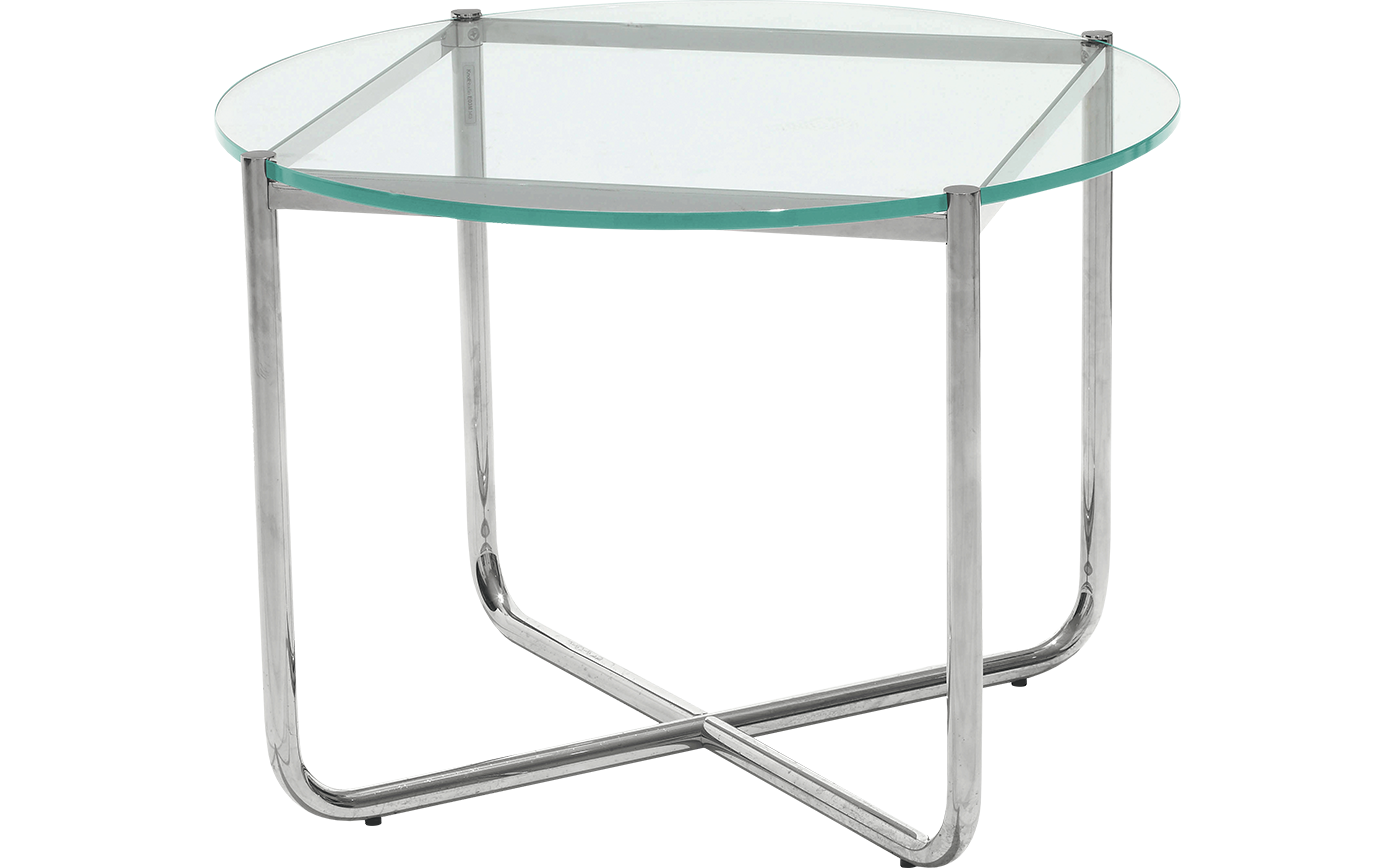 MR low table with top in 12mm clear or frosted polished plate glass. Frame and legs are welded tubular and rectangular stainless steel buffed to a mirror finish.