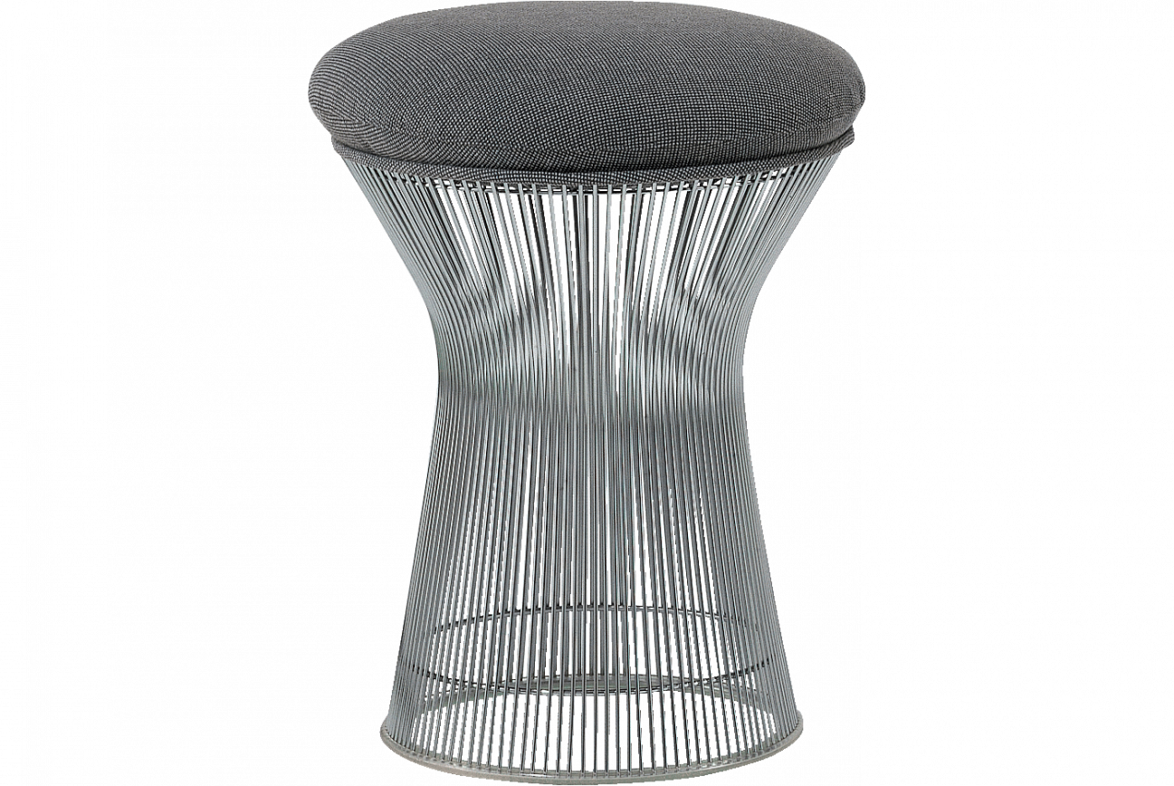 Requiring as many as 1,000 welds and crafted out of wire and space, the Stool, available in a range of upholstery options, demonstrates Platner's belief that there is room in modernism "for the kind of decorative, gentle, graceful design that appeared in a period style like Louis XV."