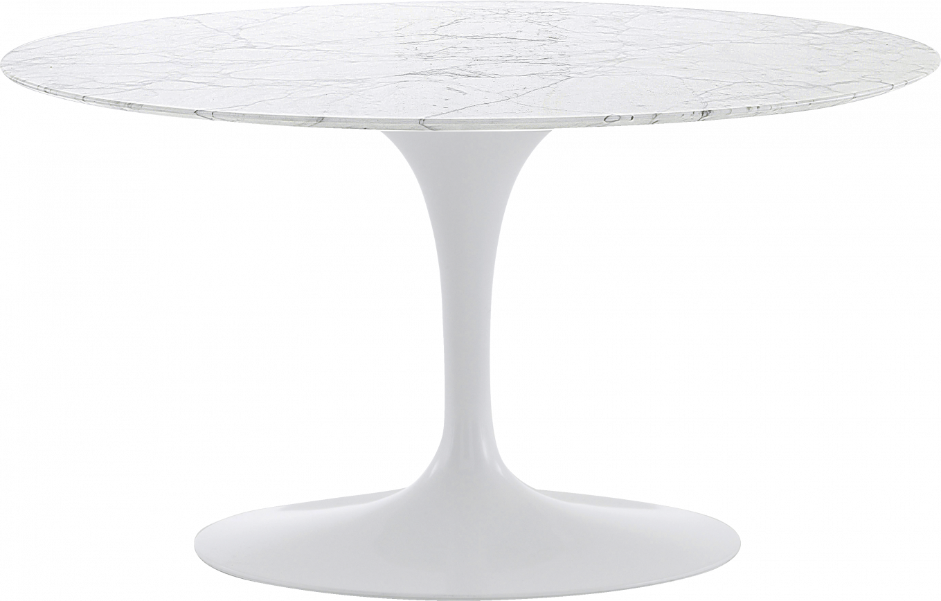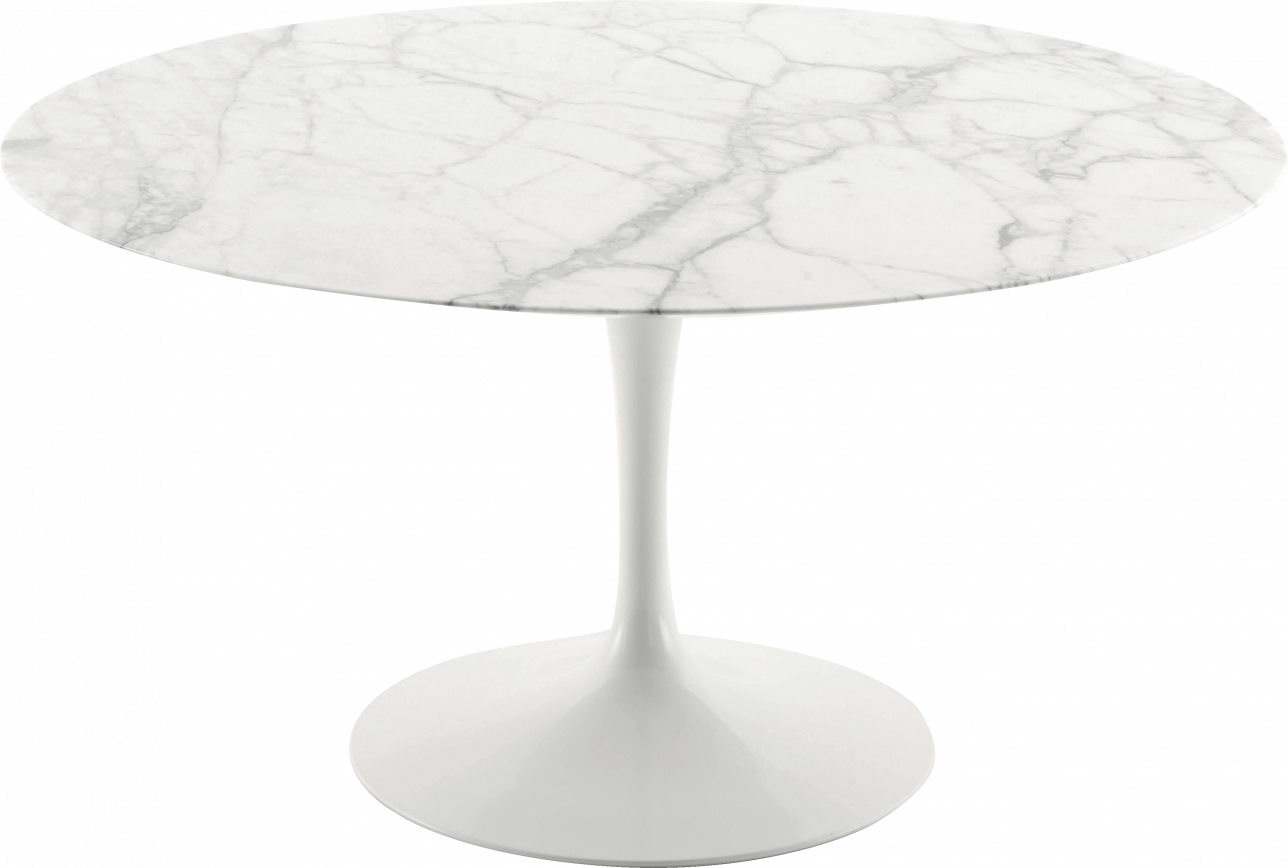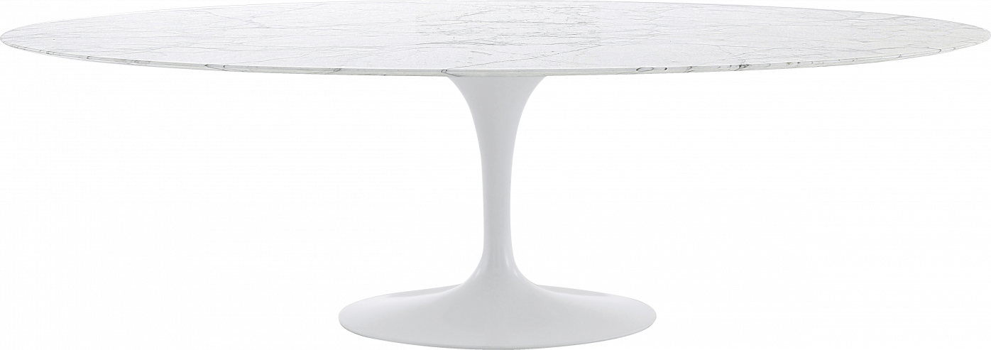 The Saarinen dining/meeting tables are available with round or oval tops at dining height. The bevelled-edged tops are available in 30mm thick satin-smooth White-core laminate or 20mm thick polyester-coated marble. The 120 and 137cm diam and oval tops are also available in timber veneer.