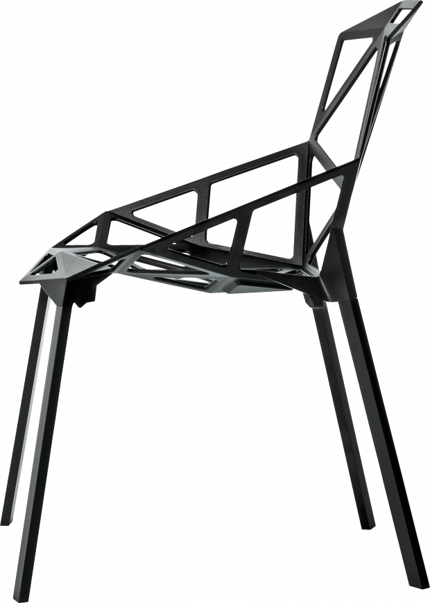 Chair One is a versatile stacking chair suitable for outdoor use (painted version). Legs are in polished or anodised aluminium. Seat in polished die-cast aluminium or in die-cast aluminium treated with sputtered fluorinated titanium and painted in polyester powder. With a flame retardant finish.