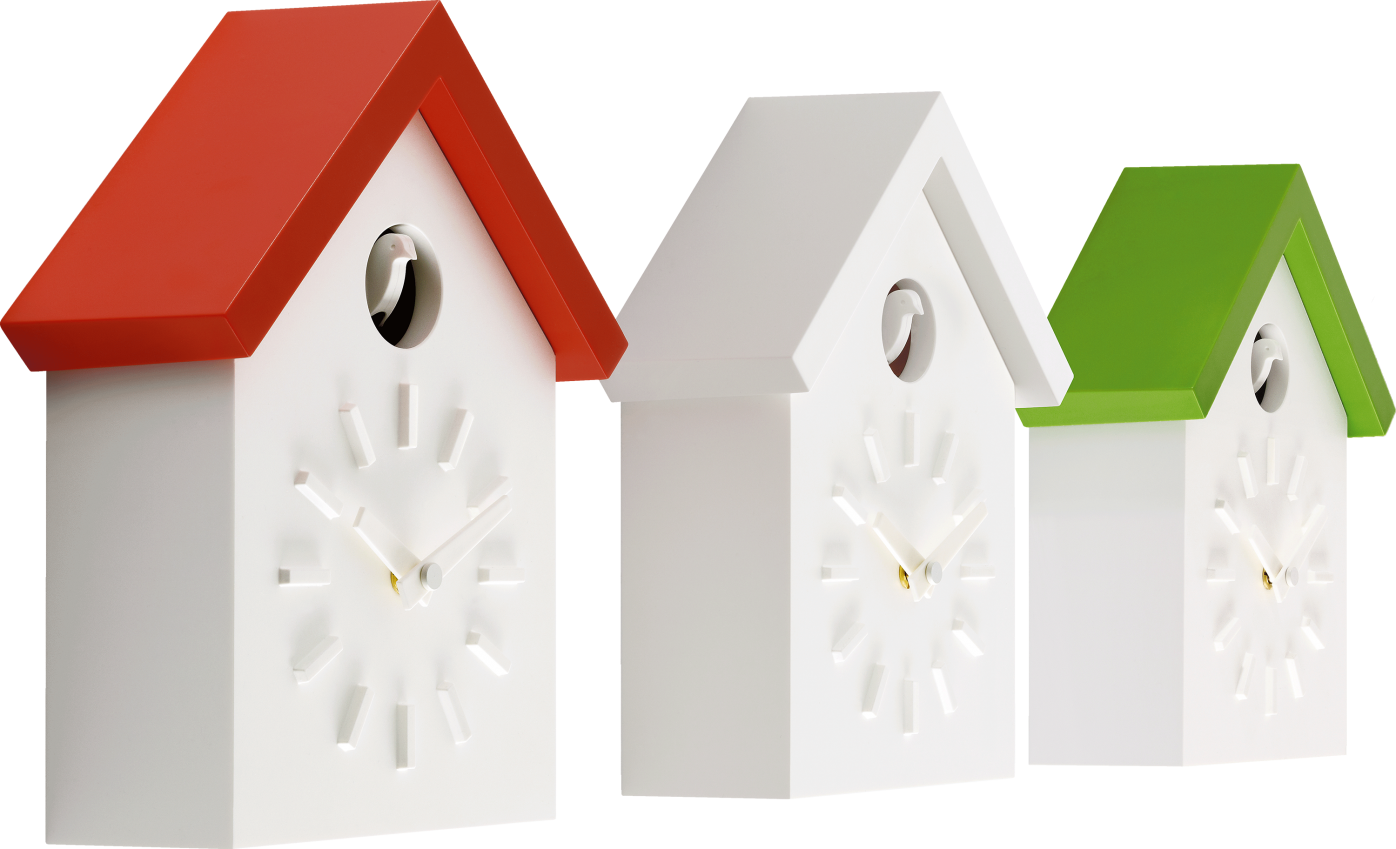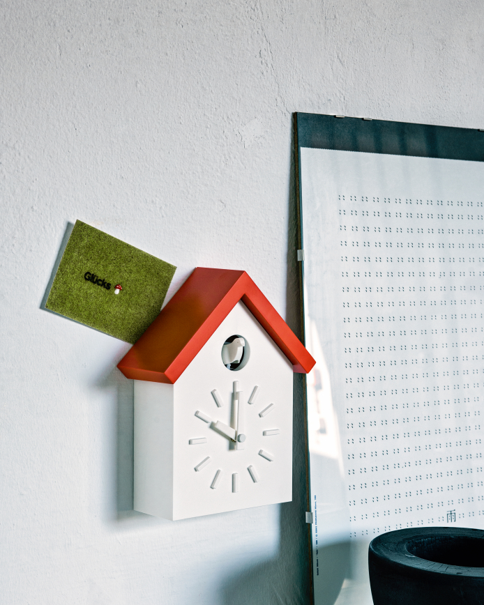 Cu-Clock is a wall clock that draws its inspiration from the classic cuckoo clock, idealizing its shape and using a more contemporary material: injection-moulded ABS.