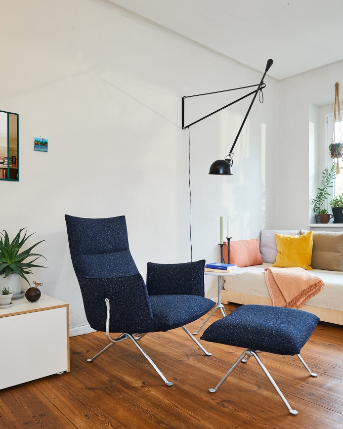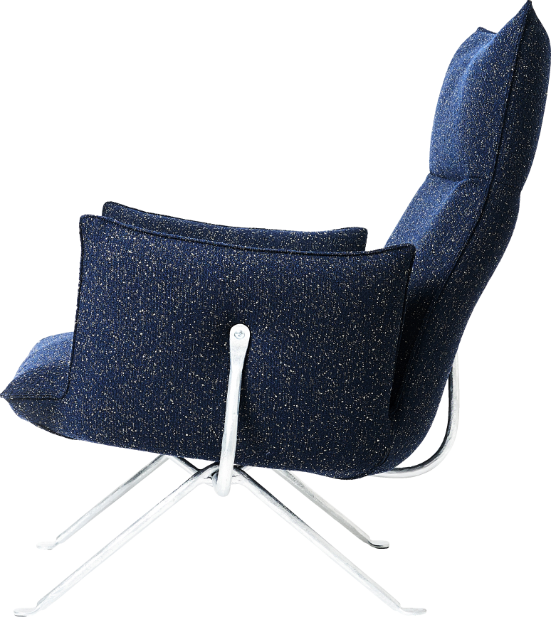 Options : Frame galvanised or painted in polyester powder: grey anthracite. Upholstery in Kvadrat fabric or leather. Optional lumber cushion.