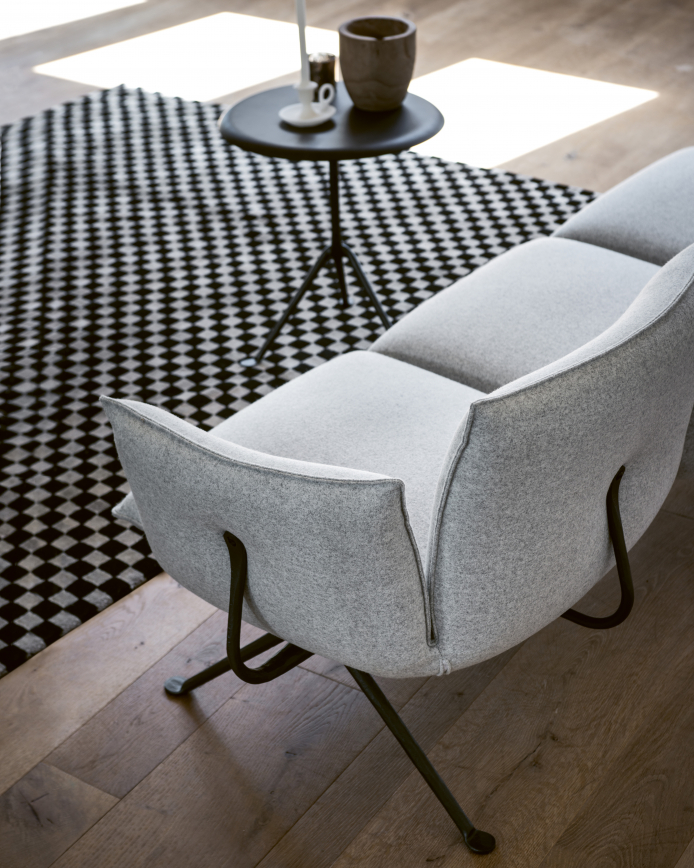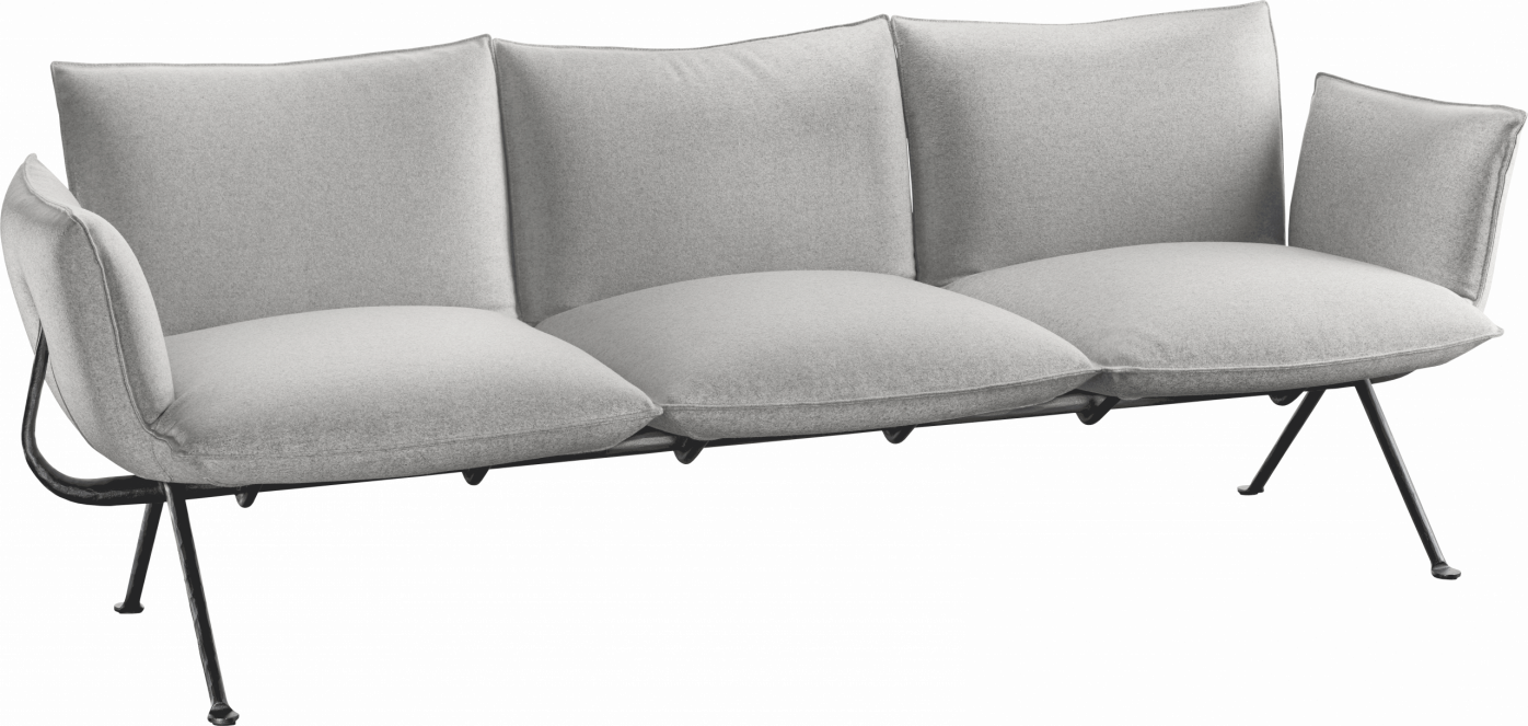 With its expanse of plush cushions, the Magis Officina Sofa—in two- and three-seat versions—invites casual conversations or indulgent relaxation. The sofa's cushions appear to float on its welded, wrought iron frame, which is as strong as it is minimal. The frame is available in a galvanized finish or painted black. Cushions come in a variety of luxurious textiles.
