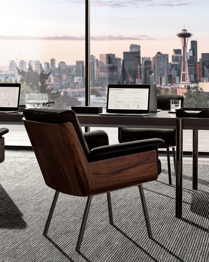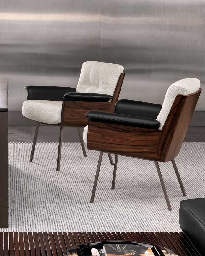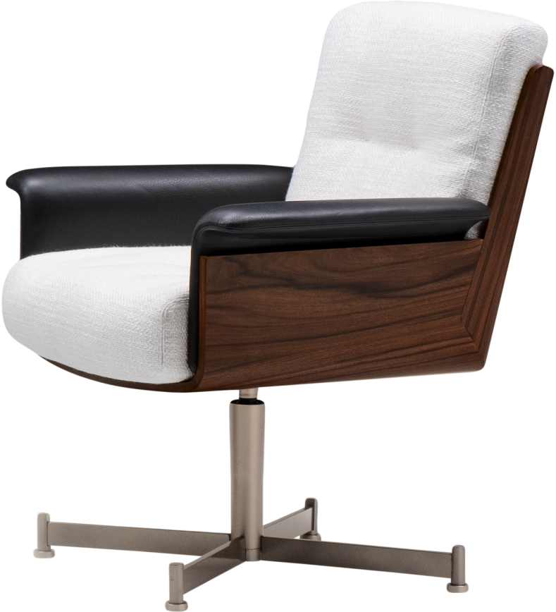 Inspired by the Brazilian architect’s many trips to Japan, the Daiki seats are born out of Marcio Kogan’s deep passion for Japanese culture and are conceived as a real tribute to Japanese design. Made using sophisticated wood crafting techniques, the curved body is composed of two elements joined at a 45° angle, Daiki Studio is available in five versions, designed for different functions and uses. An executive chair with casters, an armchair with casters or feet, and two chairs with legs .