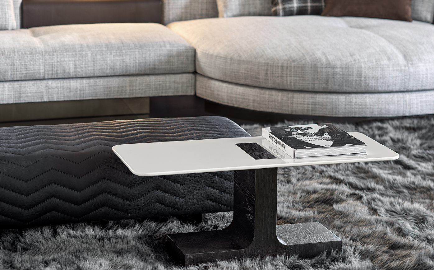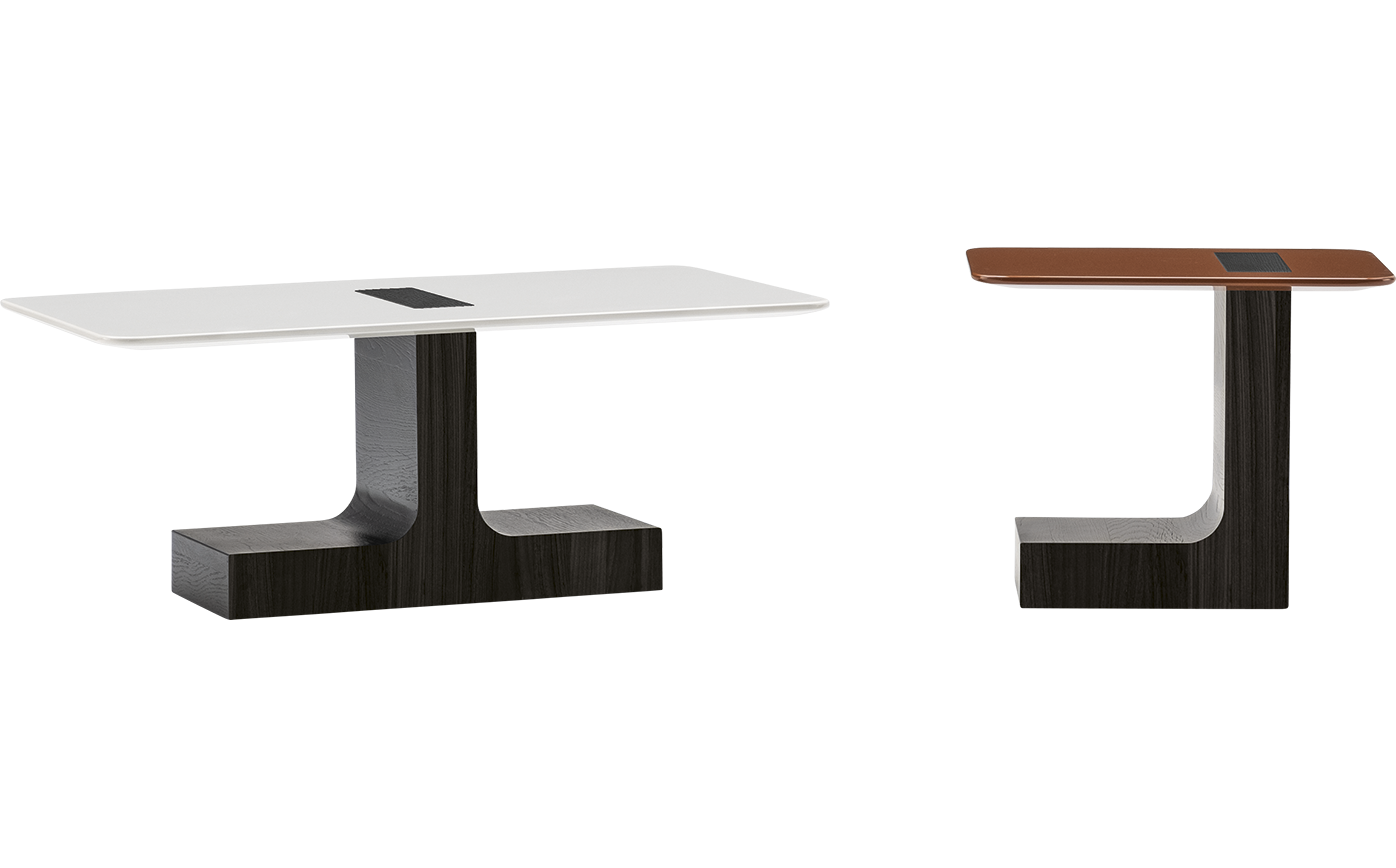 With its sculptural look and frame in solid wood inspired by the Brutalist architecture, Block affirms itself as a furnishing piece with a big personality. Featuring a solid wood block structure, the base of the Block coffee table is conceived as a solid volume in the shape of an “L” or an upside-down “T”. In Moka lacquered oak wood, it is completed by a top that let the graft appear on the surface in clear view.