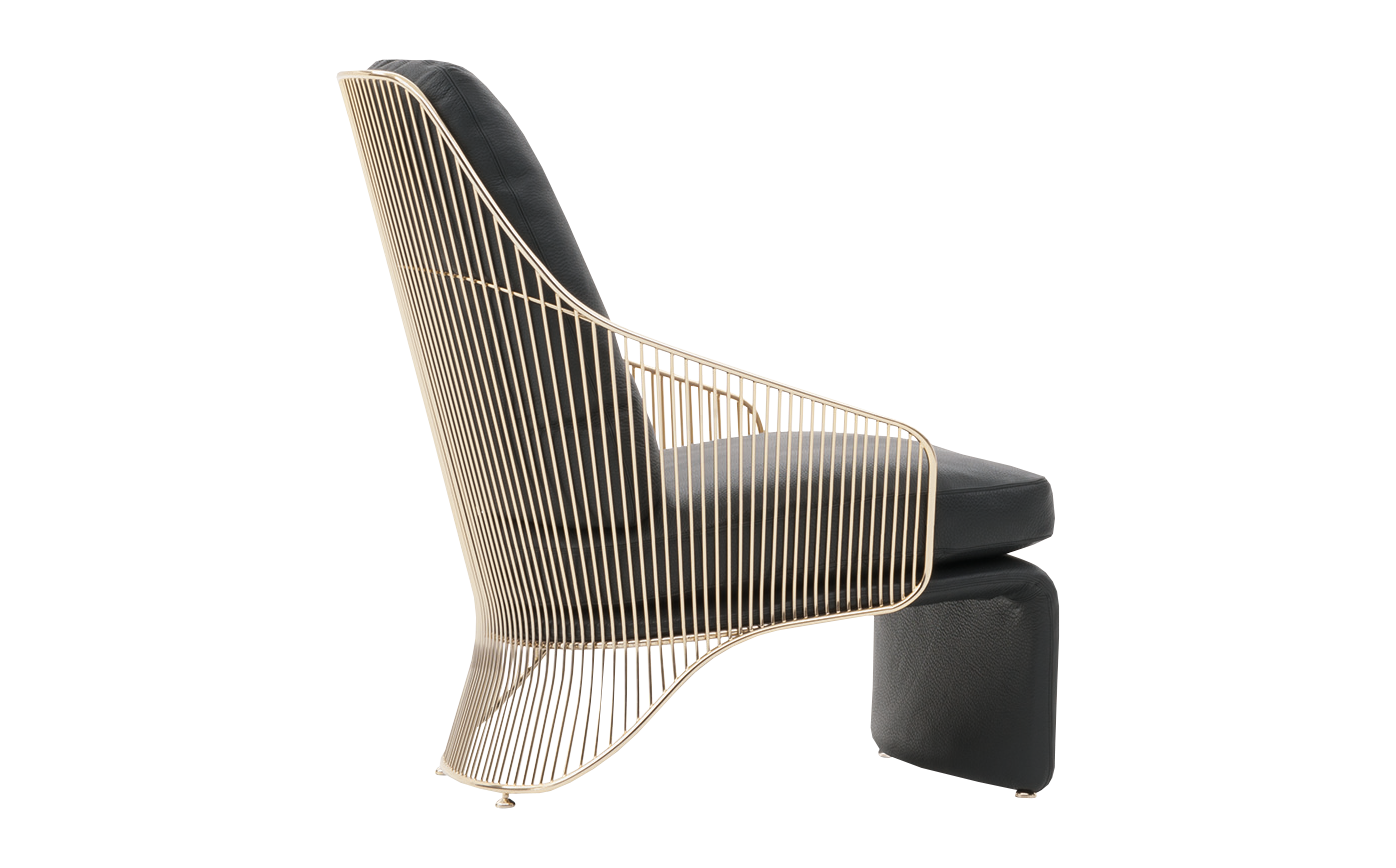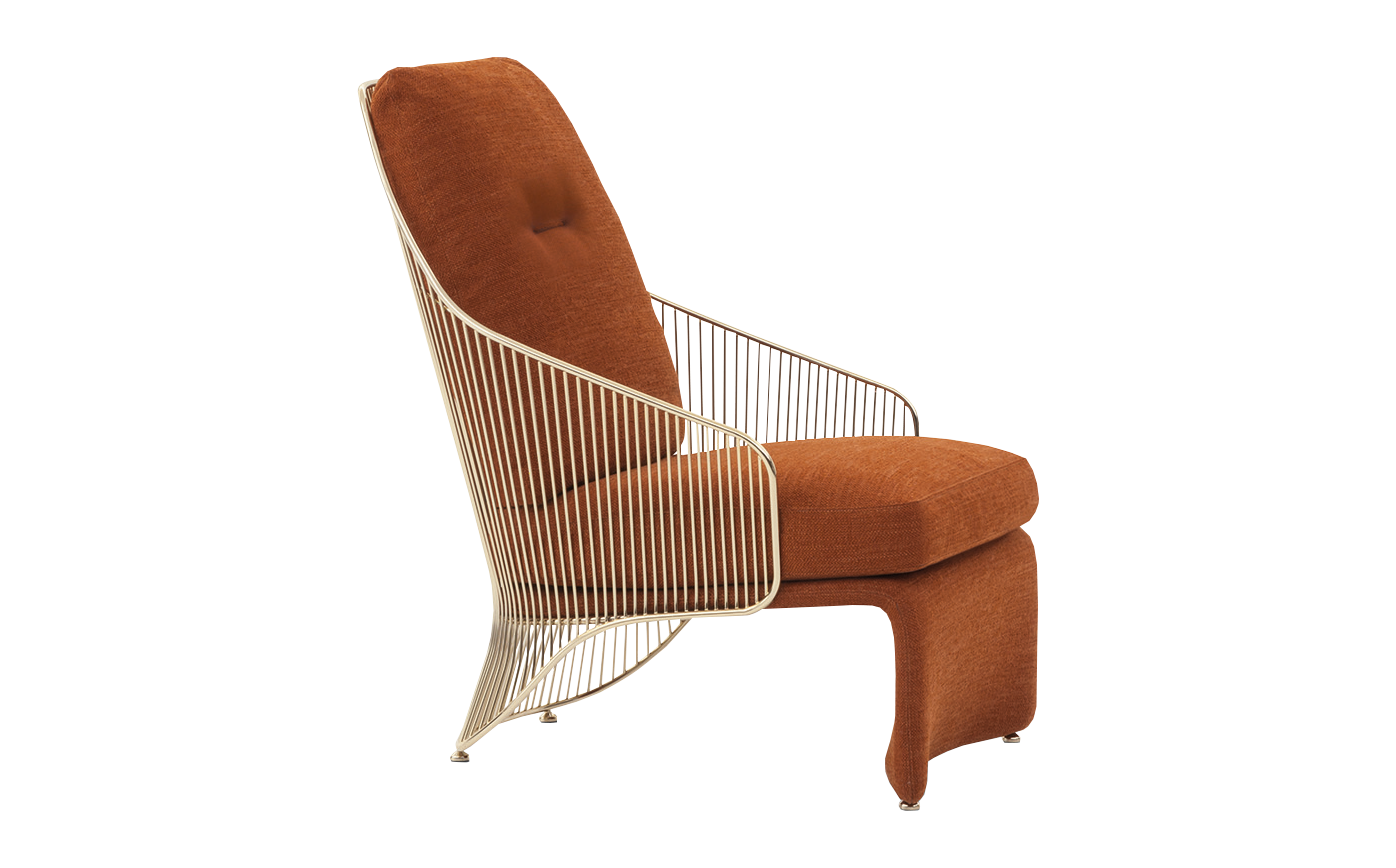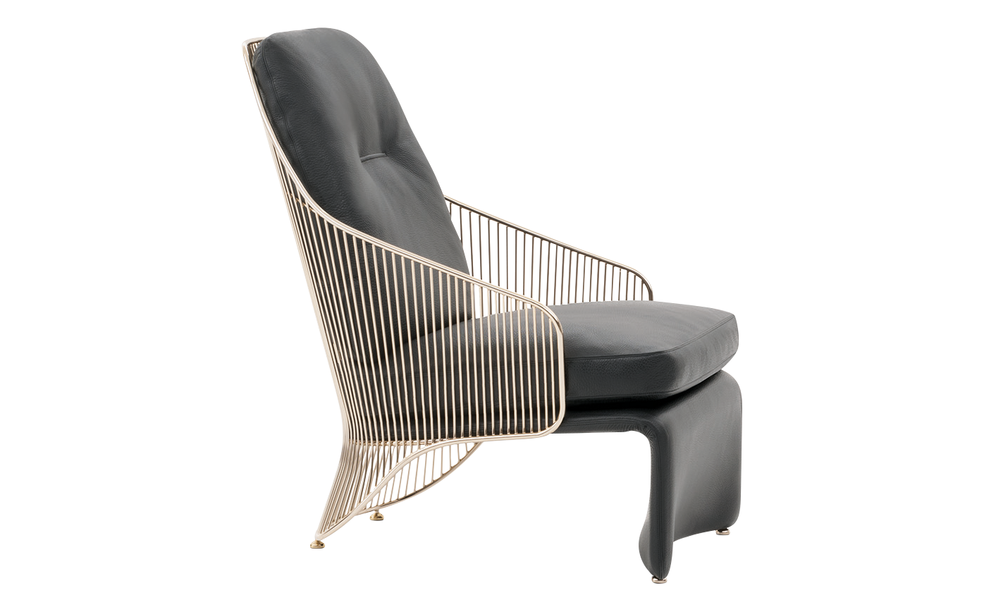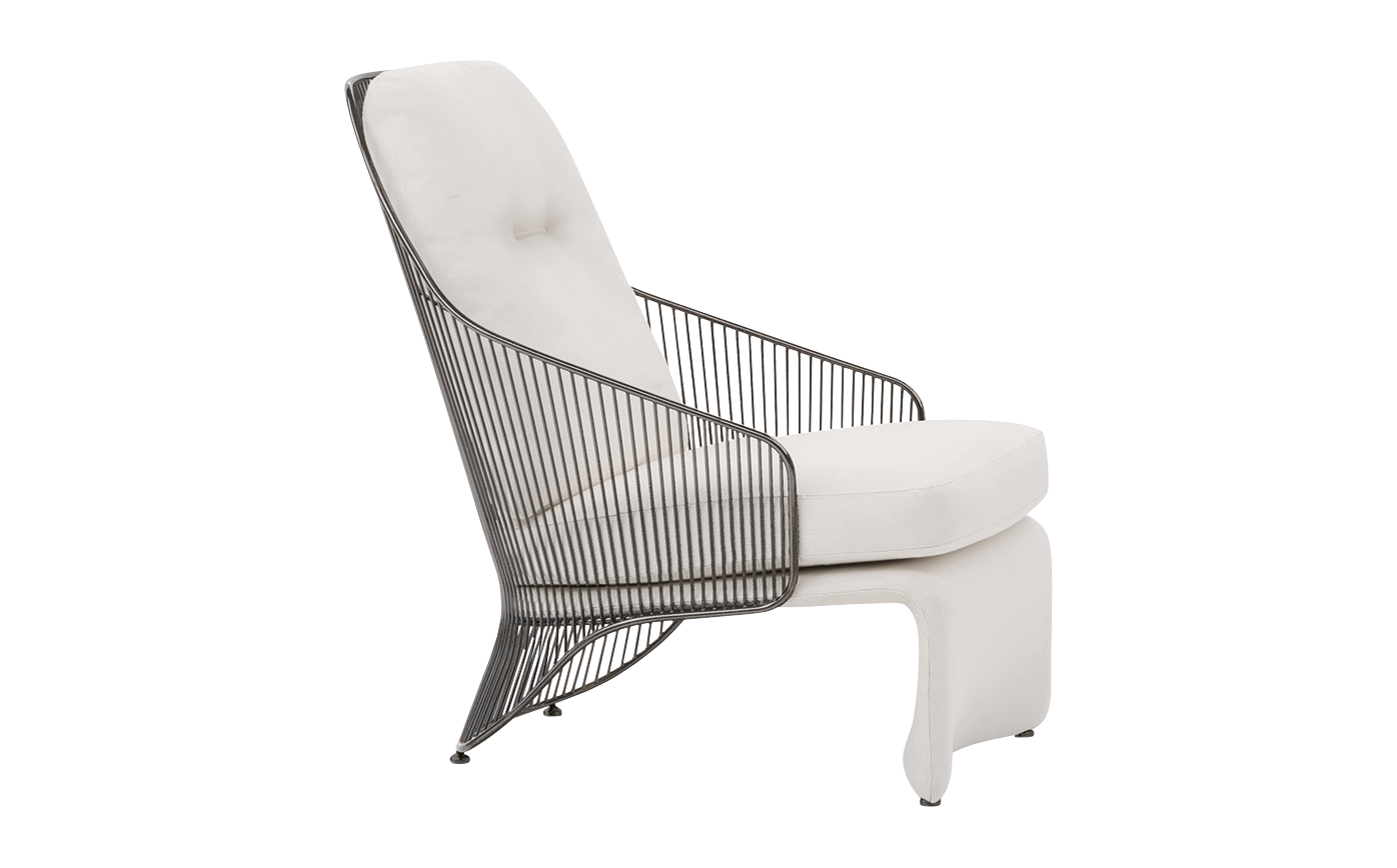 The enveloping shape of the metal backrest accommodates a soft cushion that makes the Colette “Outdoor” armchair even more comfortable. The profile of the metal structure is calendered, assembled and welded in more than 300 places.