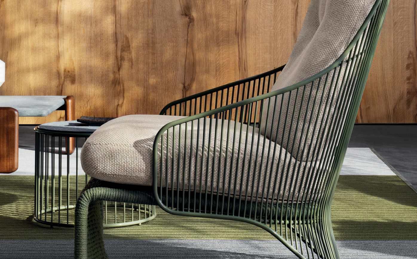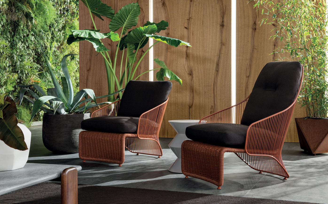 Colette “Outdoor” is an armchair with an enveloping shape that comes in an unexpected combination of innovative materials and colors designed to inject a spark of vitality and energy into outdoor living.