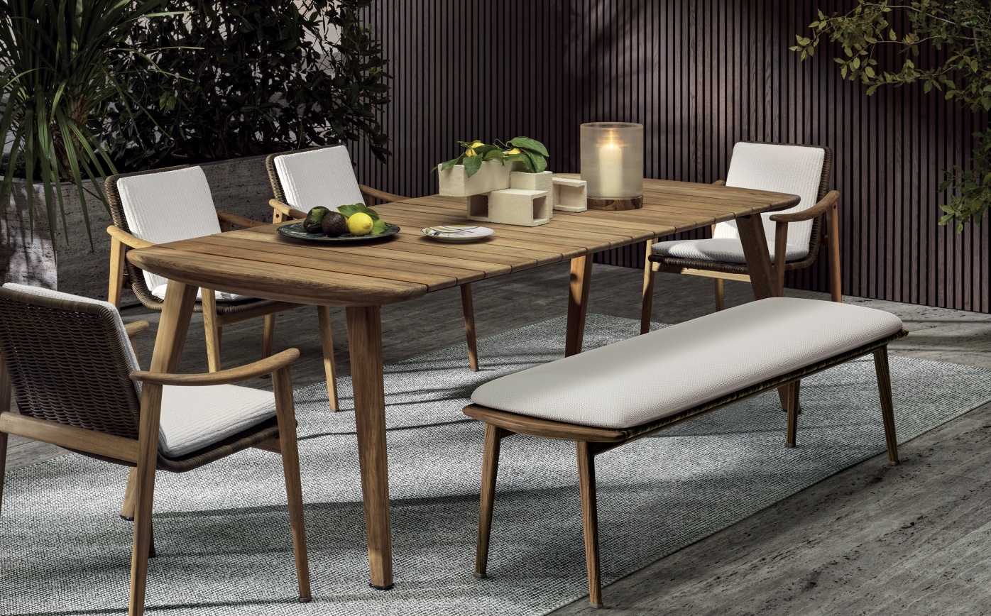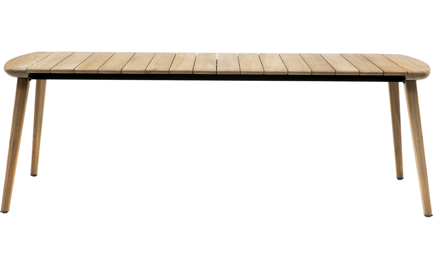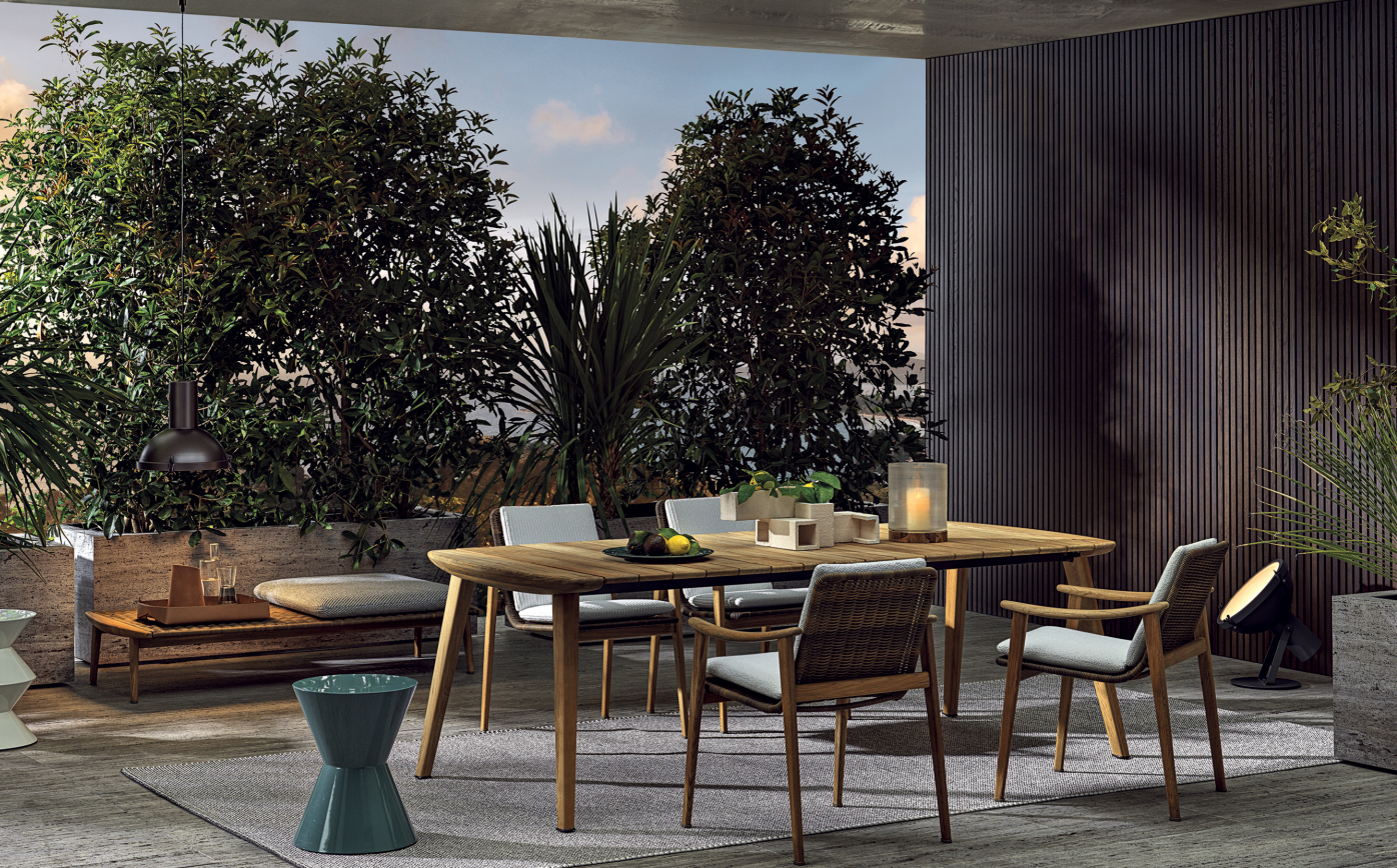Inspired by Scandinavian design, the Fynn Outdoor table is in 100% natural solid teak, crafted with artisanal savoir-faire. The design of the Fynn Outdoor dining table spontaneously originates from the design of the chairs and armchairs, for an outdoor space in harmony with the seats. With an extremely lightweight look, emphasised by its simple structure, Fynn Outdoor is a table that becomes the protagonist of any outdoor dining space.