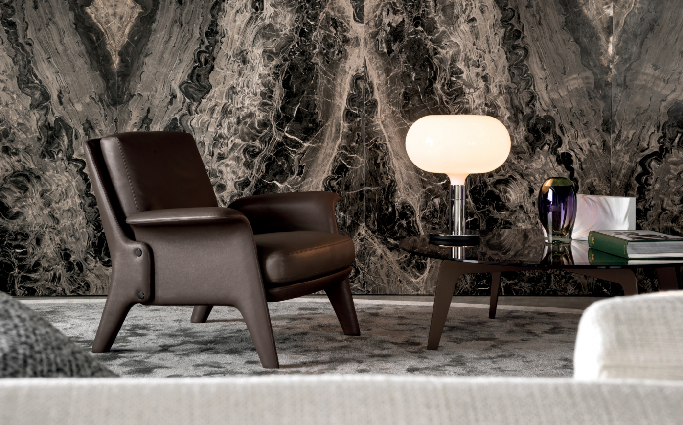 A fluid line engendered by a soft, continuous stroke – inspiration for the design of the Glover armchair was spawned by the idea of creating an armchair that is as elegant as comfortable.