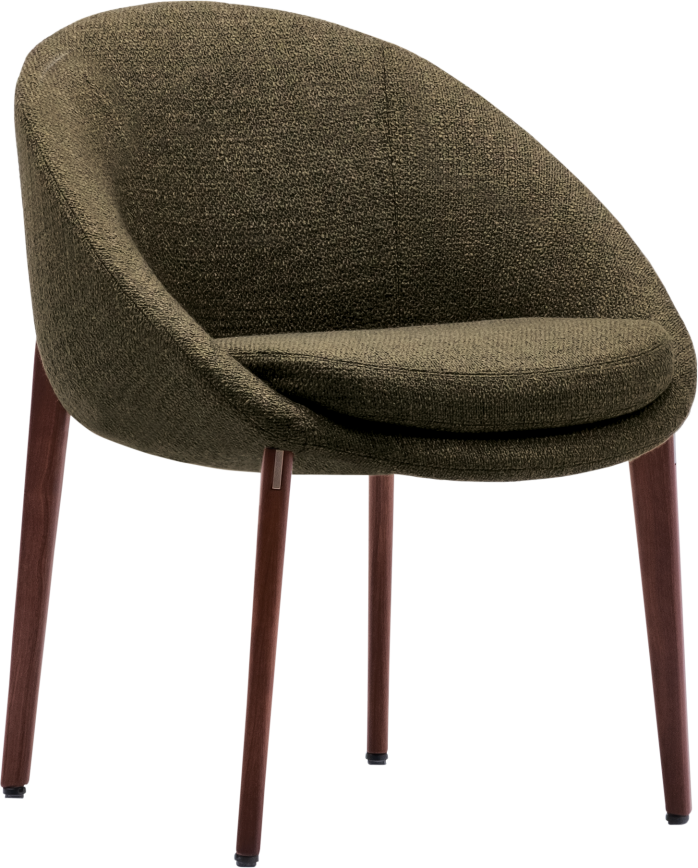 Inspired by the 1950s Lido is a comfortable basket-like nest, with a round seat enveloped by a curved line that defines the padded body. The X-shaped sculptural base is its strong distinguishing mark. The family also includes armchairs and coffee tables with a distinctive X-shaped base and lounge armchairs with legs.