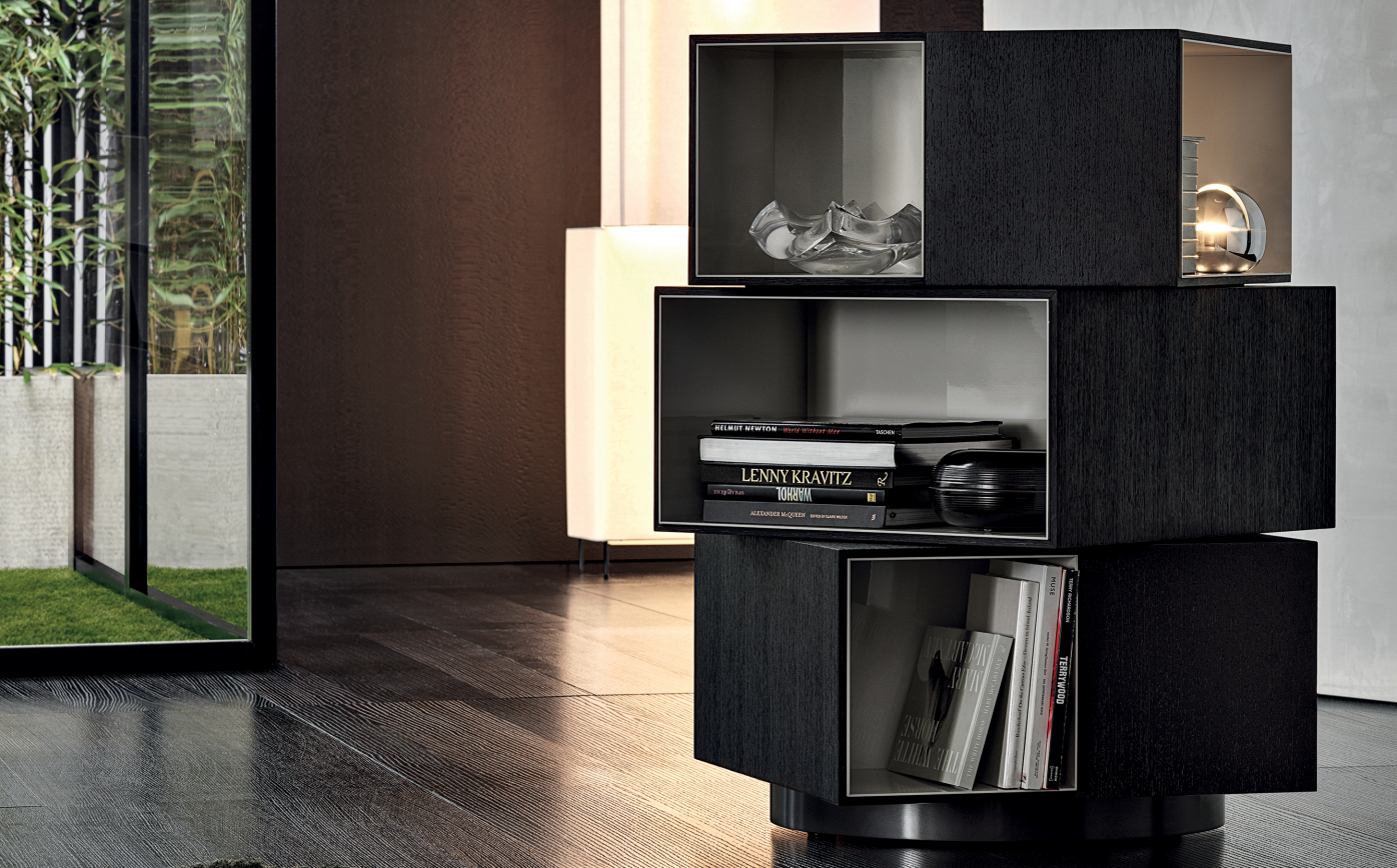 With its decidedly sculptural presence and the contrasting textures, the Page bookcase is inspired by works of modern art.‎ Its misaligned blocks, set one on top of the other also call to mind contemporary architecture.‎ Each layer can swivel and face alternate directions.