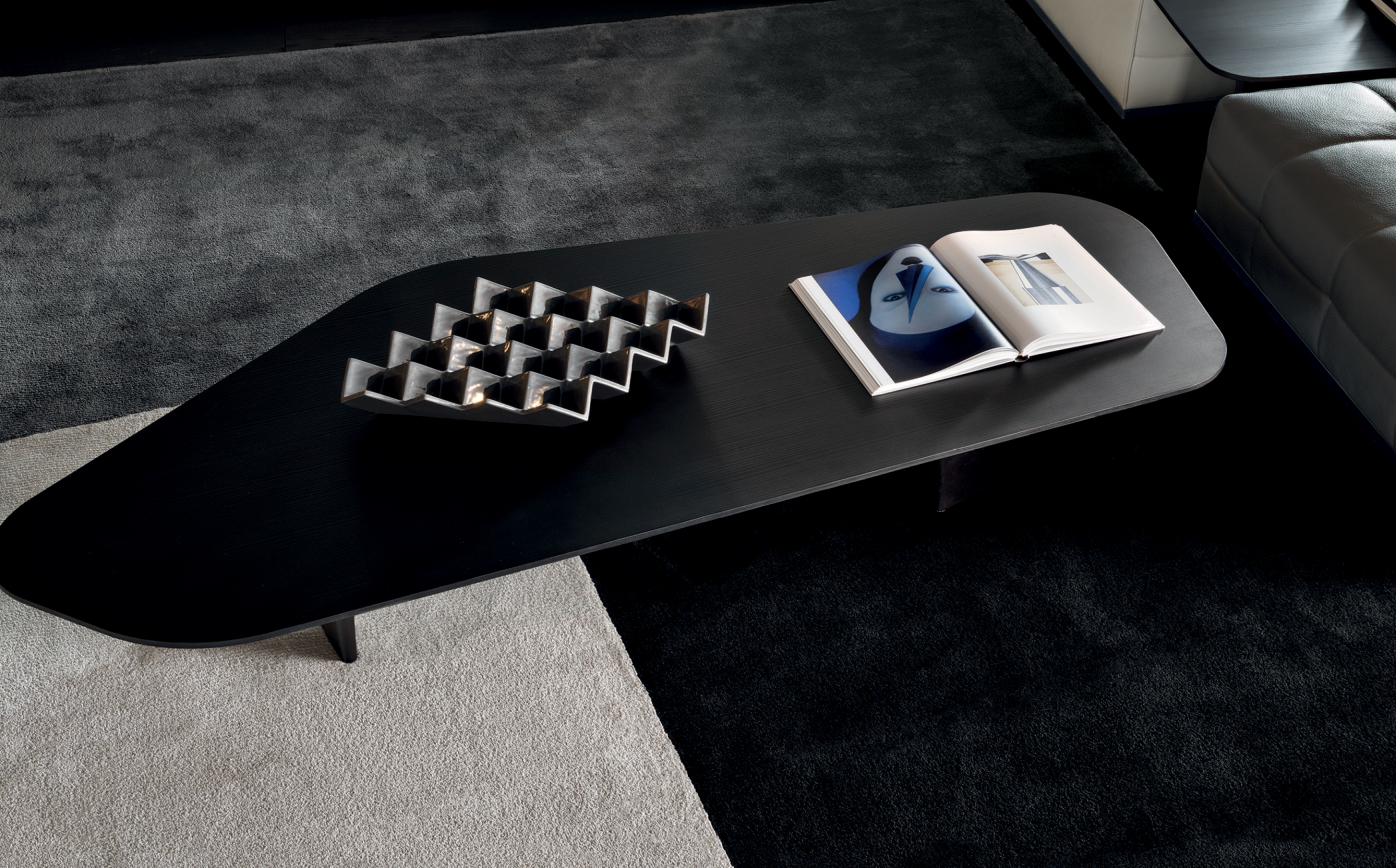 Made entirely of solid brushed oak with a painted Black finish, the base of the Song coffee tables reveals its ancestry, firmly-established in the cabinet-making tradition, while the finishes for the table tops communicate an irrepressible desire to experiment with unconventional materials and sophisticated colors, each of which can be traced back to different stylistic interpretations.