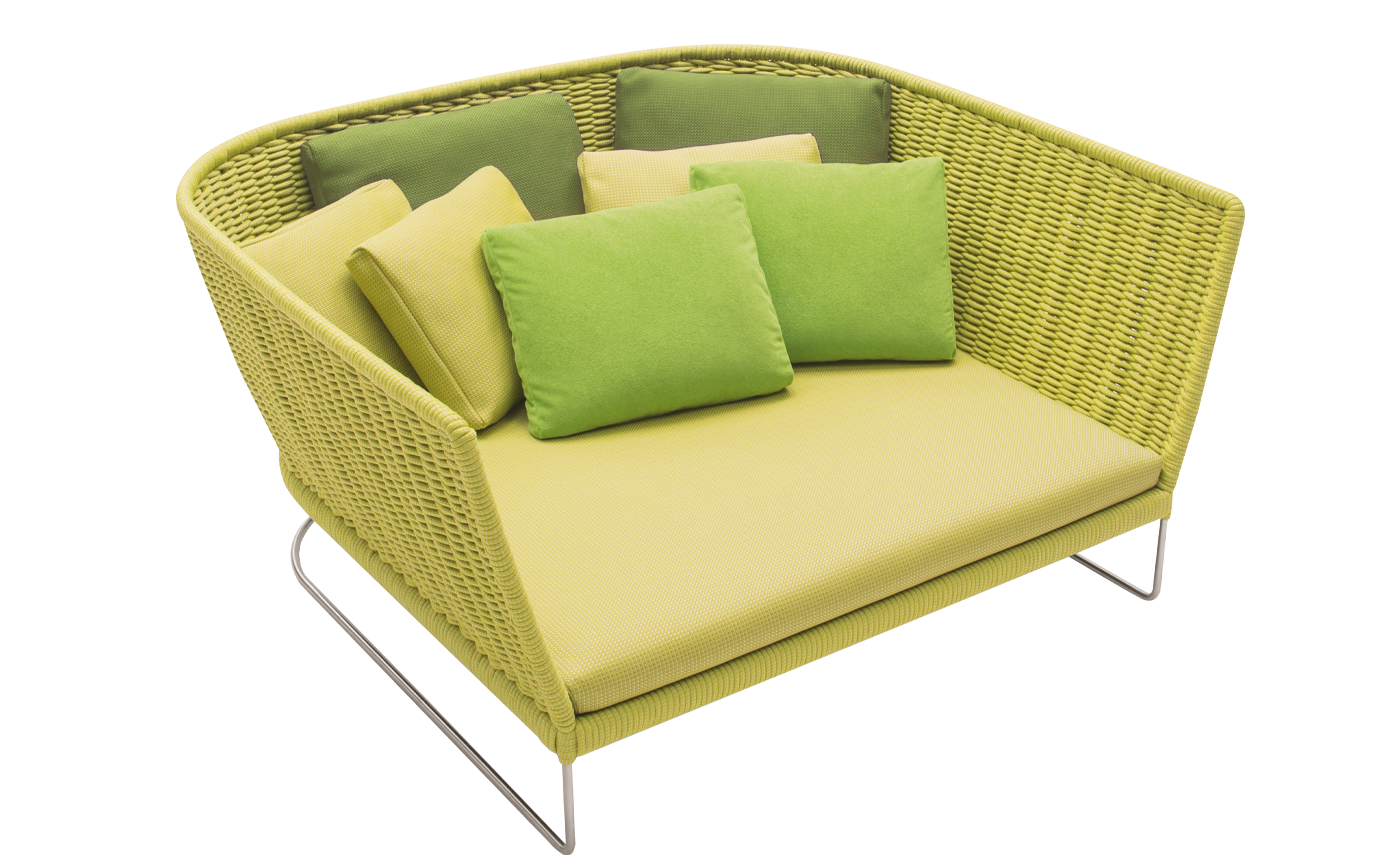 Paola Lenti’s products are based on a balance of past and present, exterior and interior, tradition and technology. The shapes are kept deliberately simple, the sophistication comes from the colours.