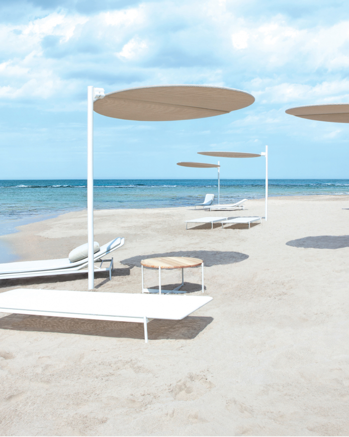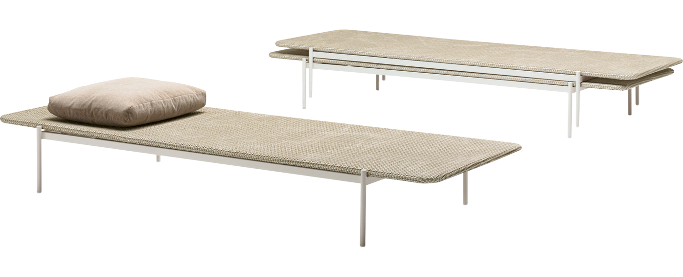 Ideal for relaxing and sunbathing on a beach or next to the swimming pool, the series Baia has a structure made of steel treated against corrosion and powder varnished. It is covered with Paola Lenti signature Rete or Kimia fabrics, which are resistant to atmospheric agents and to sea and pool water.