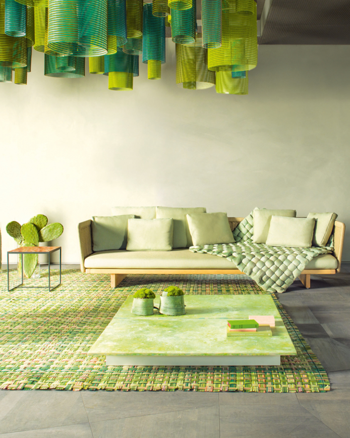 Paola Lenti’s products are based on a balance of past and present, exterior and interior, tradition and technology. The shapes are kept deliberately simple, the sophistication comes from the colours.