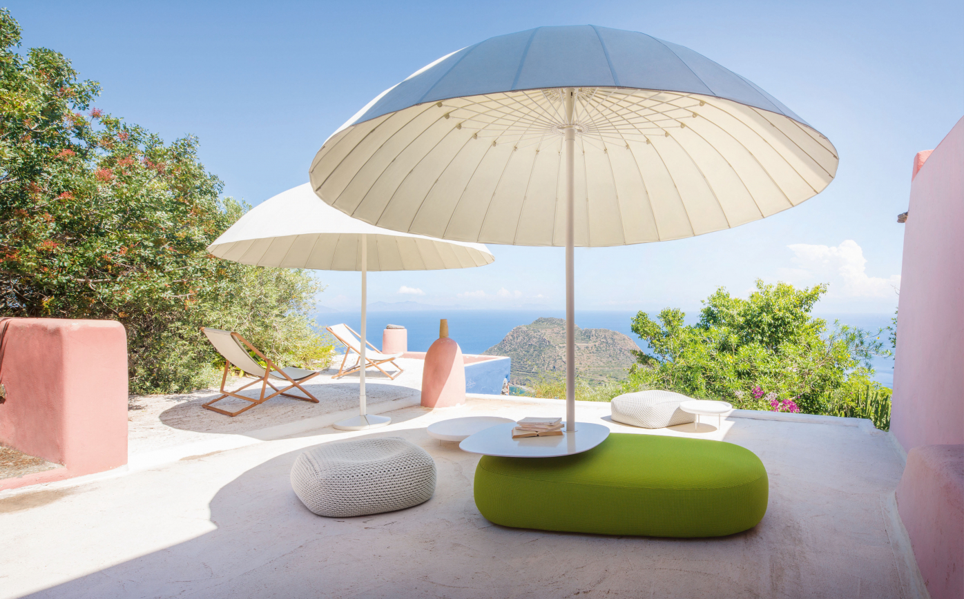For the exterior, Paola Lenti introduces the Bistro, closable sunshade available both in a flat or a dome like version.