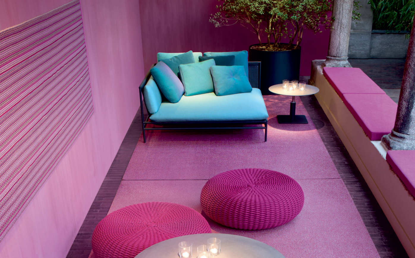 Paola Lenti’s products are based on a balance of past and present, exterior and interior, tradition and technology. The shapes are kept deliberately simple, the sophistication comes from the colours.