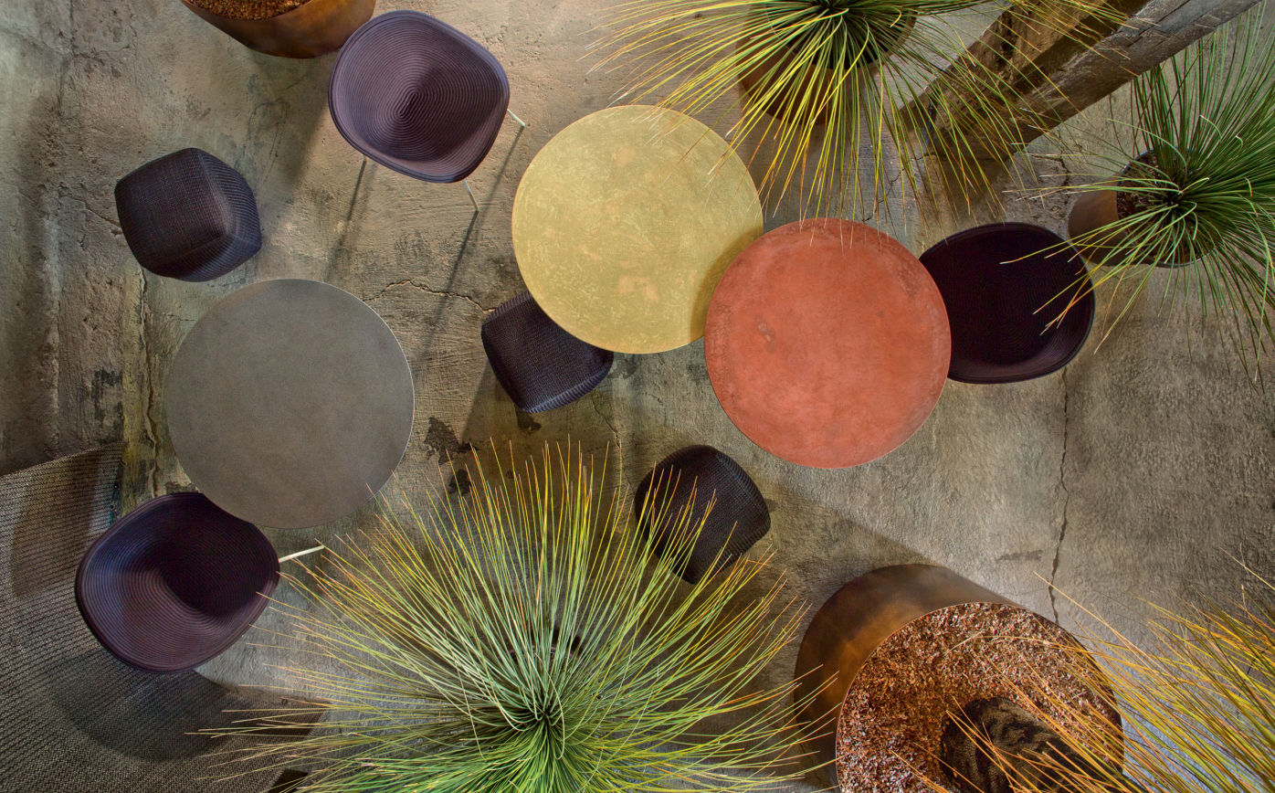 Paola Lenti’s products are based on a balance of past and present, exterior and interior, tradition and technology. The shapes are kept deliberately simple, the sophistication comes from the colours.
