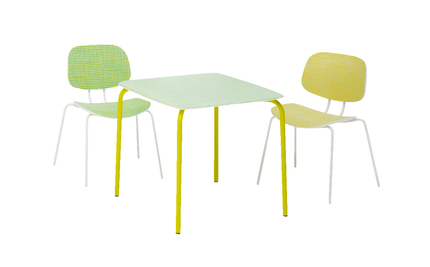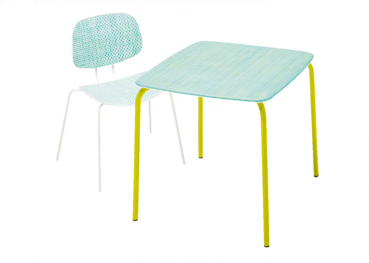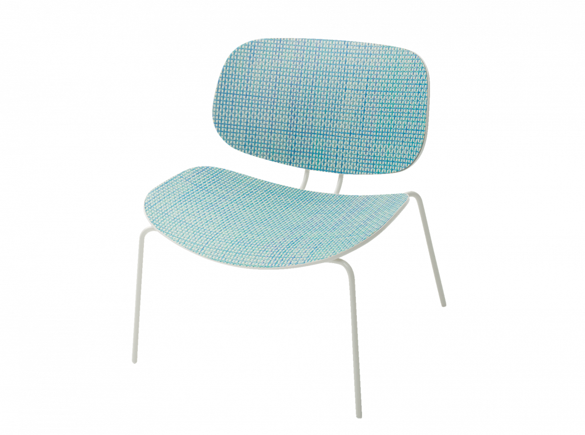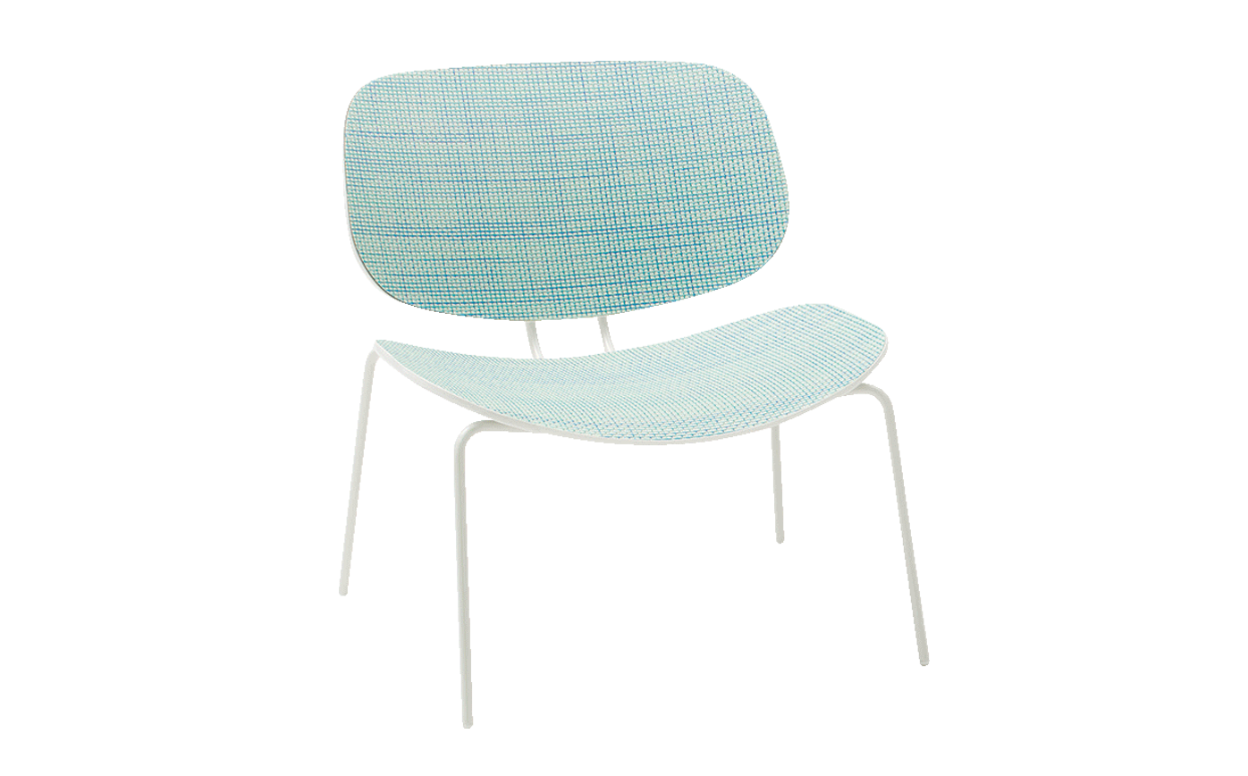 The seating parts are made of a plastic material, which is 100% recyclable and completely without mineral charges, which is co-molded with an open weave fabric in Twiggy, the new yarn developed by Paola Lenti for the exteriors.