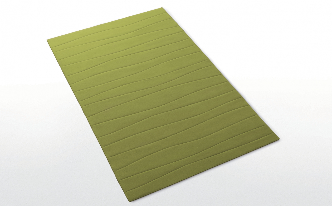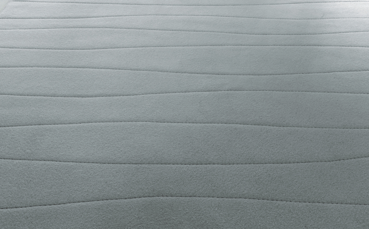 The Onda rug is available only in a double layer of felt. The rug’s surface is quilted with Punto Matelassé, which enables each side of the rug to be produced with a different colour stitching. For this reason, Onda rug can be considered reversible, even with finishing differences between the upper and the lower layer of felt. The stitching creates irregular and supple reliefs. The border features Punto Cavallo or Punto Pettine in request. The appearance of the border stitching in Punto Cavallo will be different on the two layers.