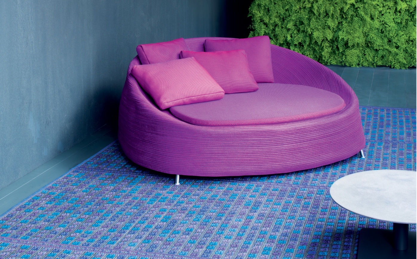 Paola Lenti’s products are based on a balance of past and present, exterior and interior, tradition and technology. The shapes are kept deliberately simple, the sophistication comes from the colours.
