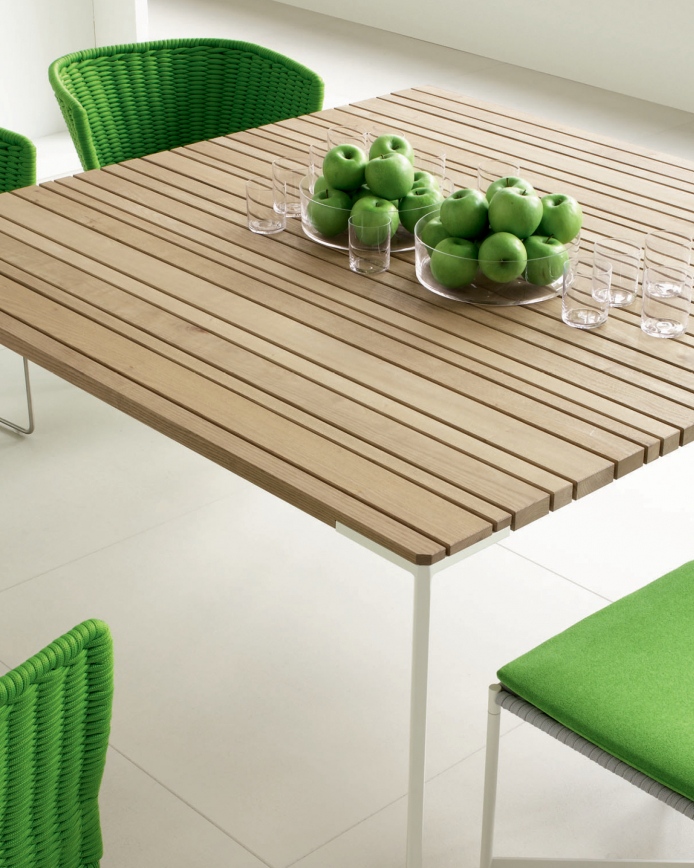 Sunset is a solid and roomy table designed to be an architectural element which integrates with nature.