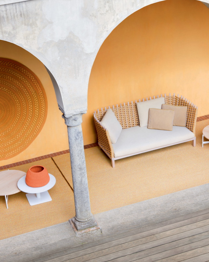 Paola Lenti’s products are based on a balance of past and present, exterior and interior, tradition and technology. The shapes are kept deliberately simple, the sophistication comes from the colours.
