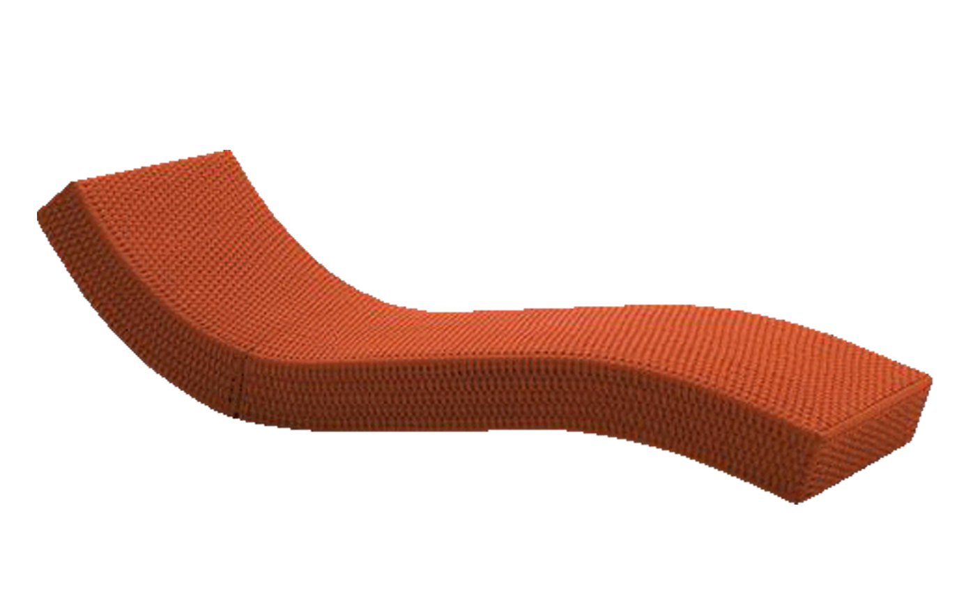 Wave outdoor chaise lounge with three adjustable positions. Wave upholstery is created by hand weaving Rope 04 directly onto the frame of the piece. Structure in cataphoresis-treated steel and polyester varnish.