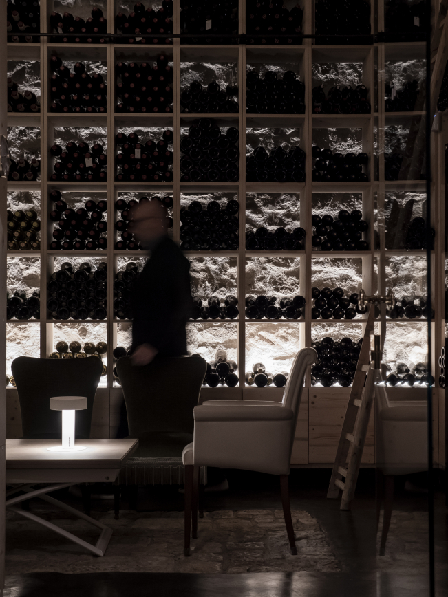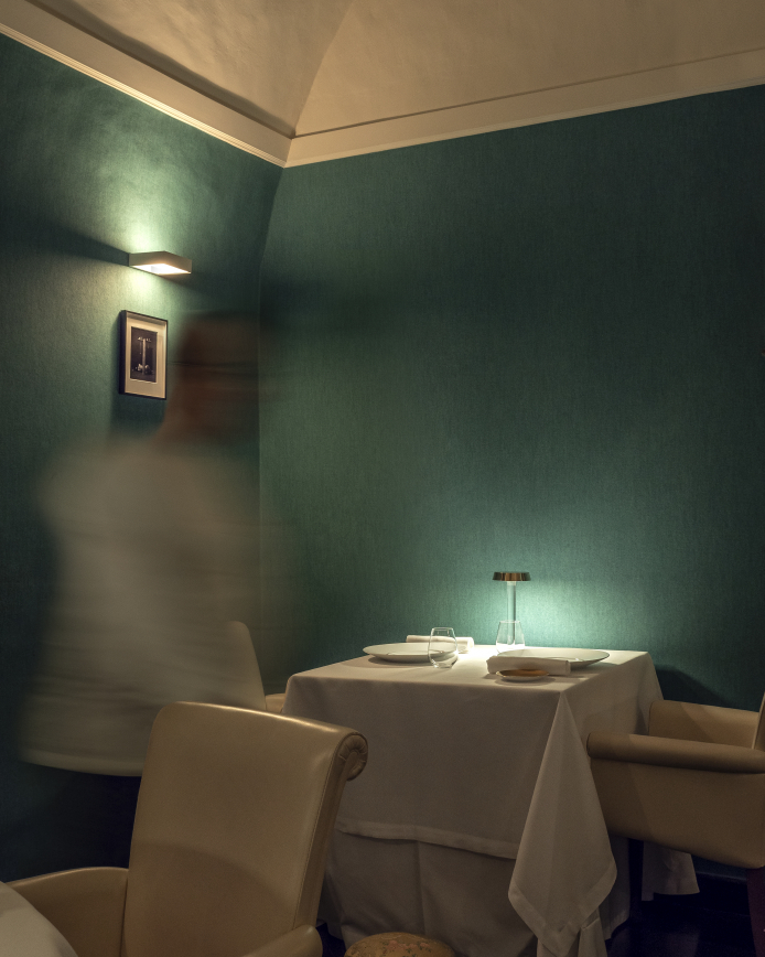 Housed in the Baroque Palazzo la Rocca in the Sicilian town of Ragusa, the Duomo restaurant of super-chef Ciccio Sultano is a food destination in its own right. The bourgeois interior is designed along the lines of a private apartment, in which Davide Groppi’s Tetatet Flute table lamps cast an intimate light, their metal disc shades perched upon transparent glass stems that all but disappear into the sumptuous decor. Meanwhile, his Popup table lamps double as speakers, emitting a gentle background soundtrack; his monolithic Toast wall lights, meanwhile, provide functional lighting in service areas.
