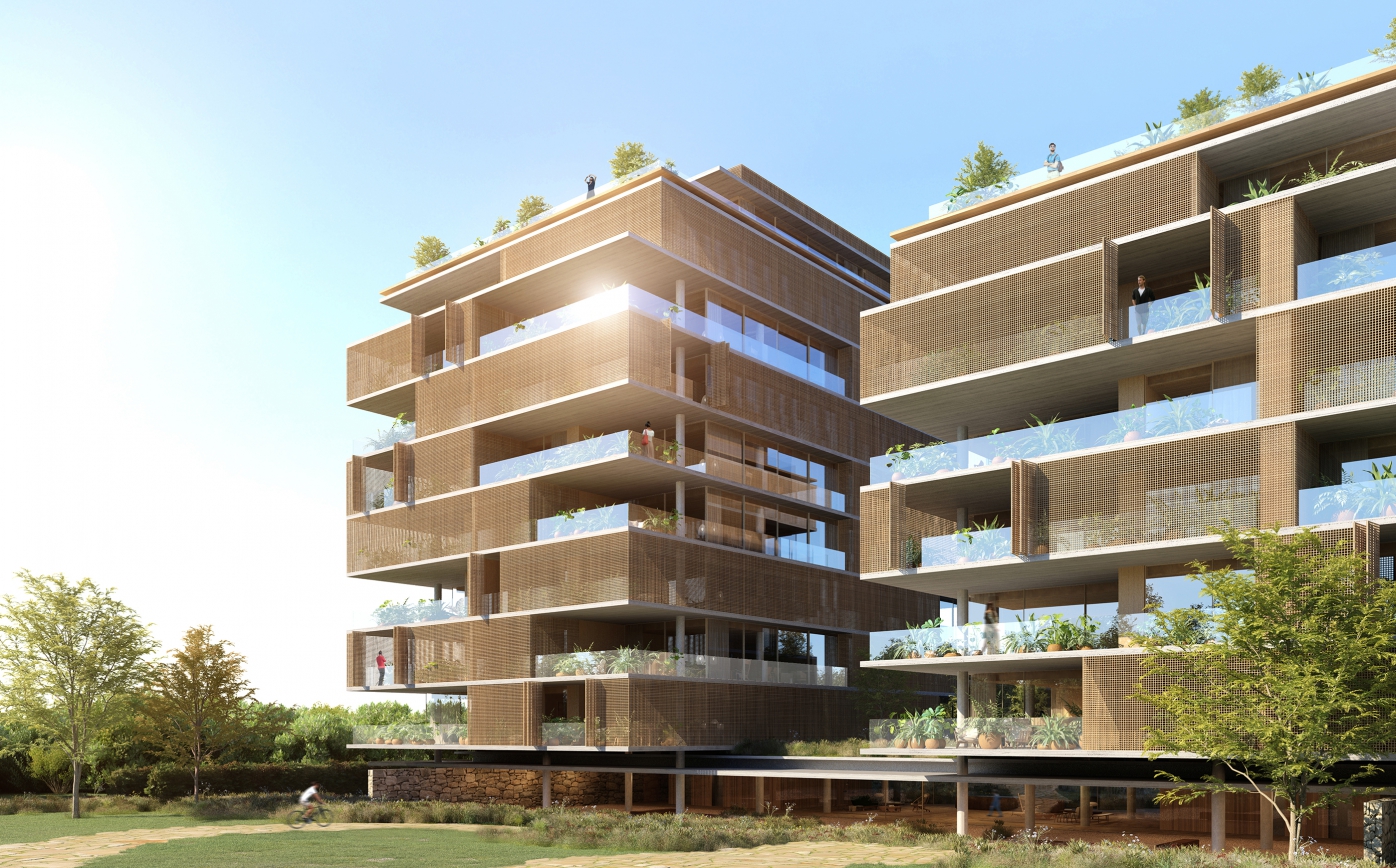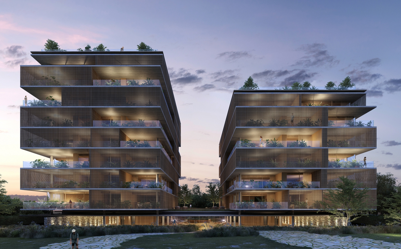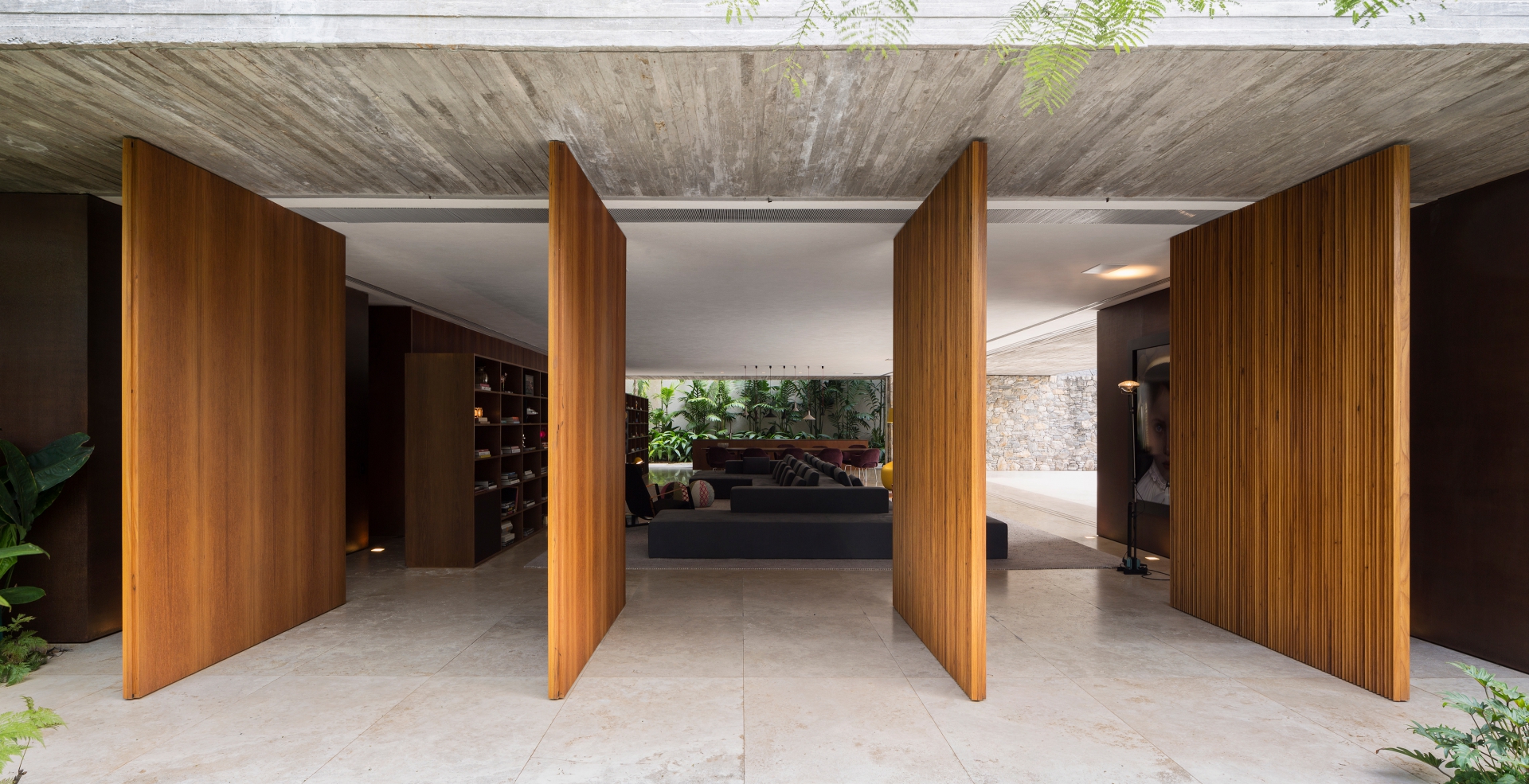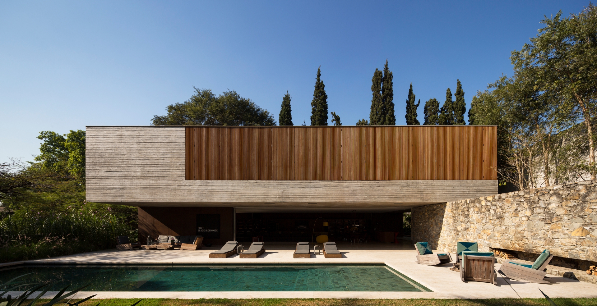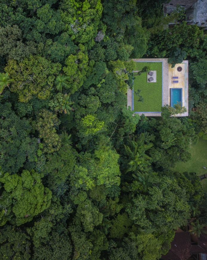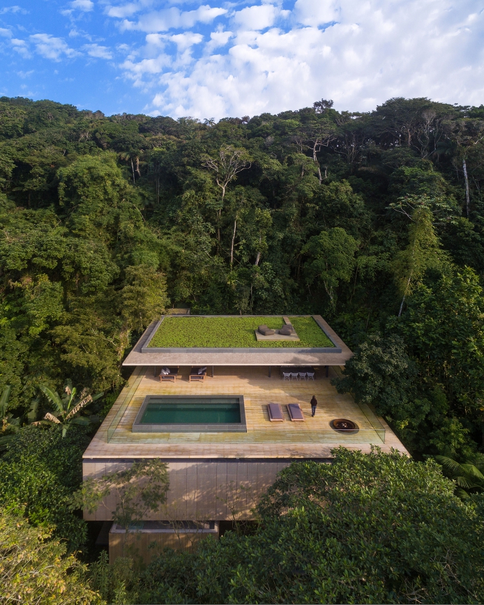 Buildings that appear to be monolithic, Modernist structures are actually permeable to air, while sheltered from the sun, which is perfect for the region. Whether through deep overhanging eaves, and moveable facades like in the Ipes House seen above, and the Jungle House below. Or through the punctuated boxlike shaded forms of the larger apartment Signature Building. While living in comfort with, and with open access to the surrounding environment, is an obvious priority for Studio MK27, none of these concerns compromise the exacting forms of their architecture.