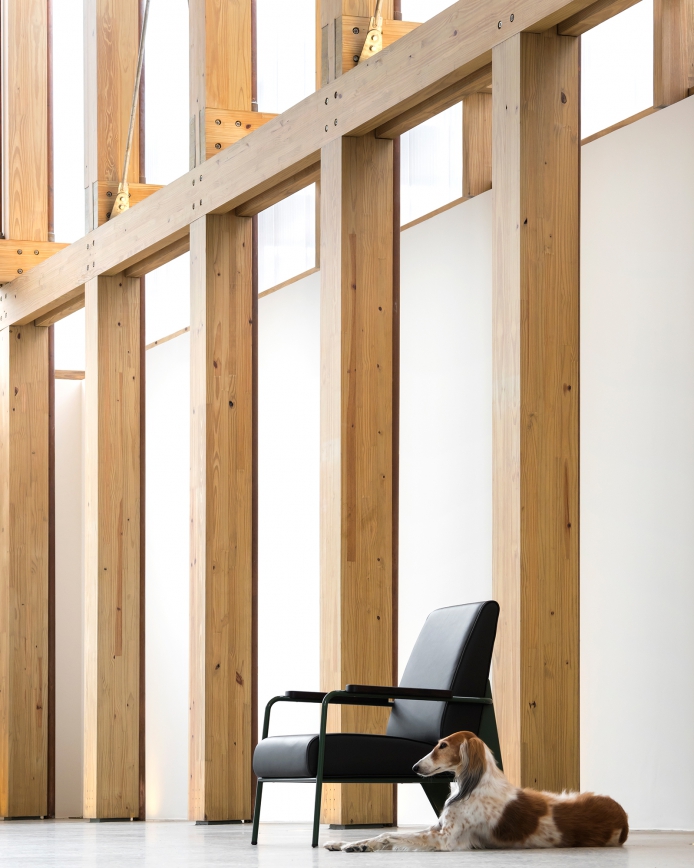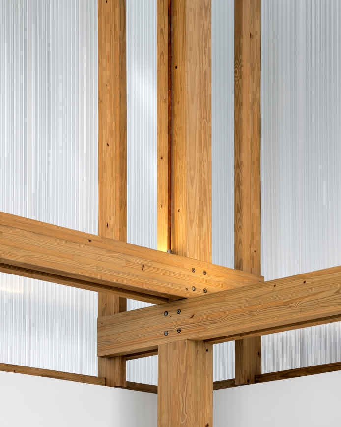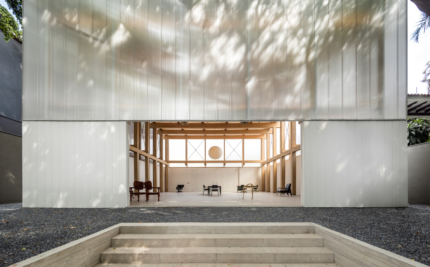 The same sensibility is carried through into commercial projects. Seen here is Micasa Vol C, a furniture showroom. The considered use of natural materials in the structure contrasts with the translucent polycarbonate and metal shell, all with a particular precision, in keeping with Kogan's longtime approach.