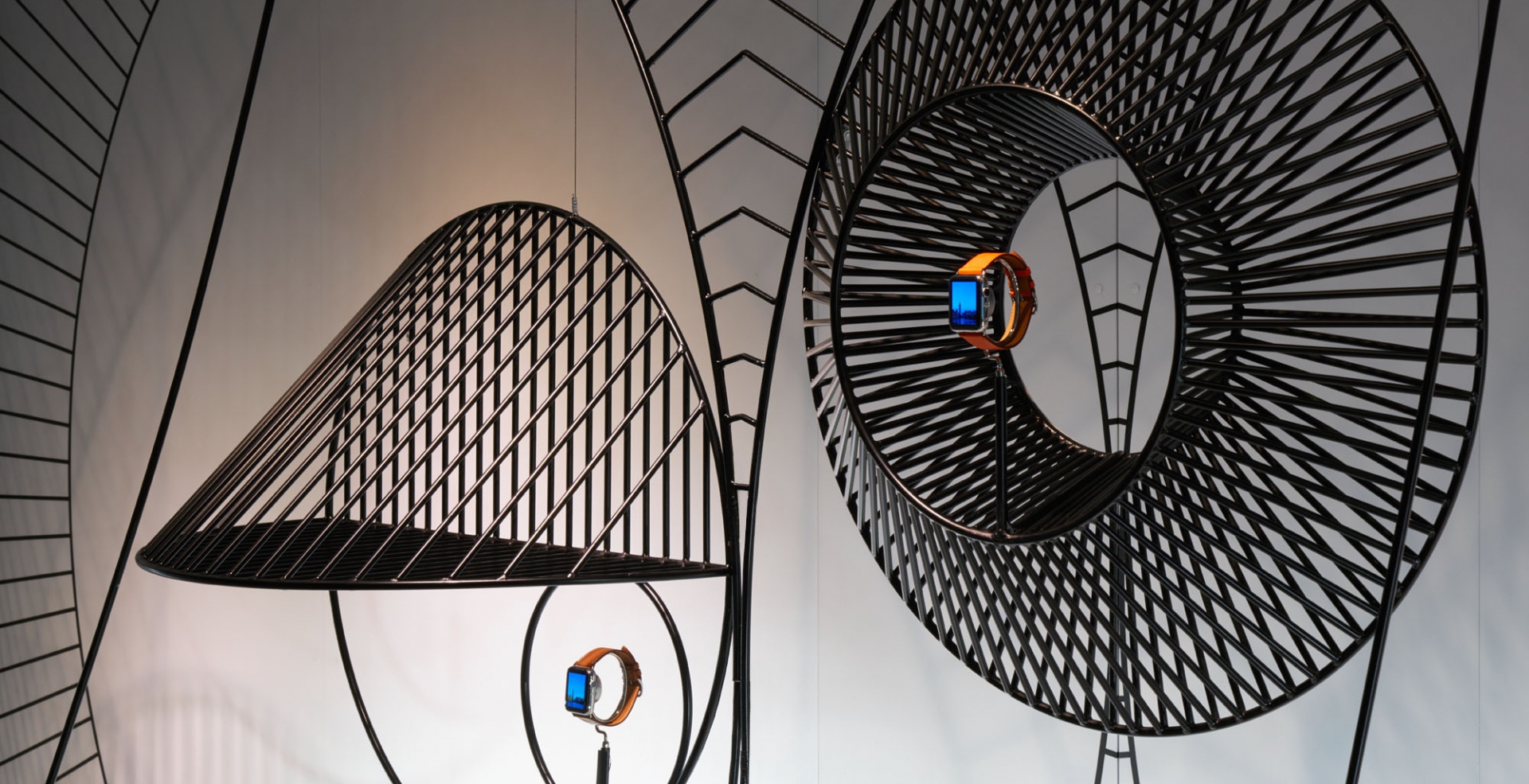 GamFratesi’s work manages to be both refined and playful. Exhibition design for Hermès Apple Watch collaboration encapsulates their approach perfectly. The heritage and artisan craft of Hermès meets the technological forward looking Apple. The careful composition of black metal wires for the displays by GamFratesi create an optical effect, playfully interpreting the drawings of Robert Dallet, an artist and naturalist.