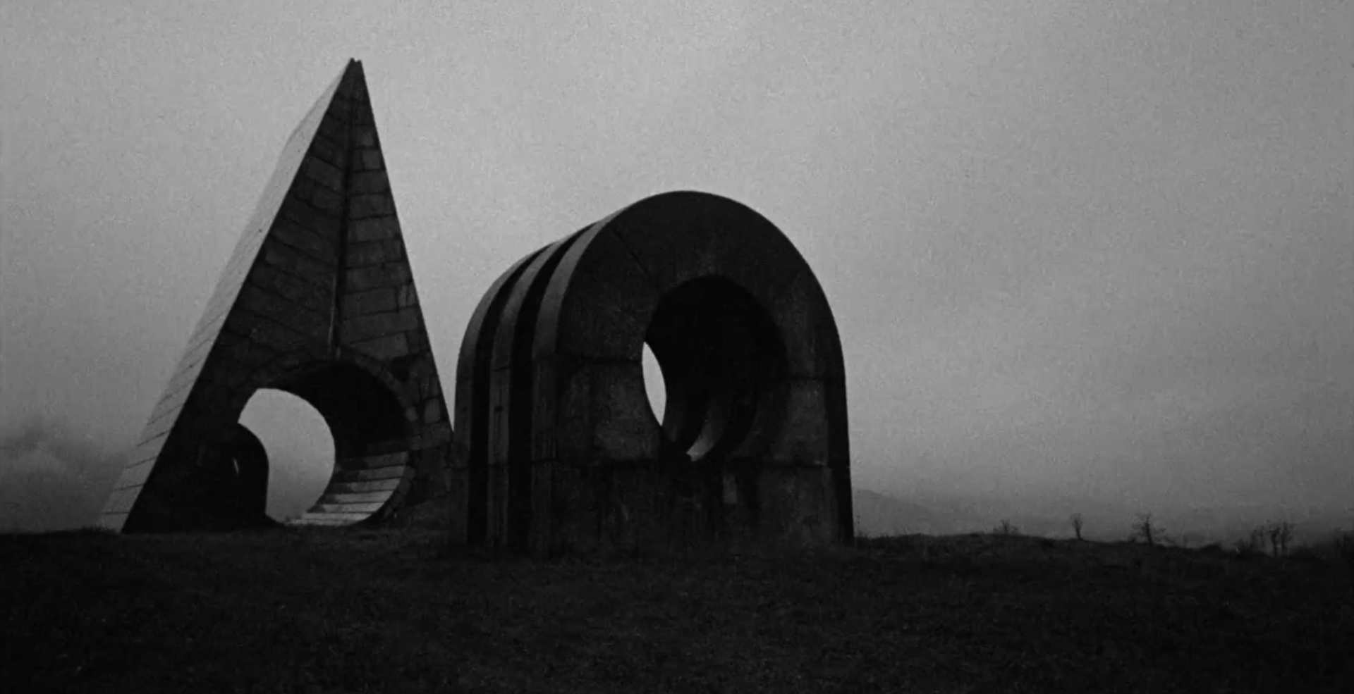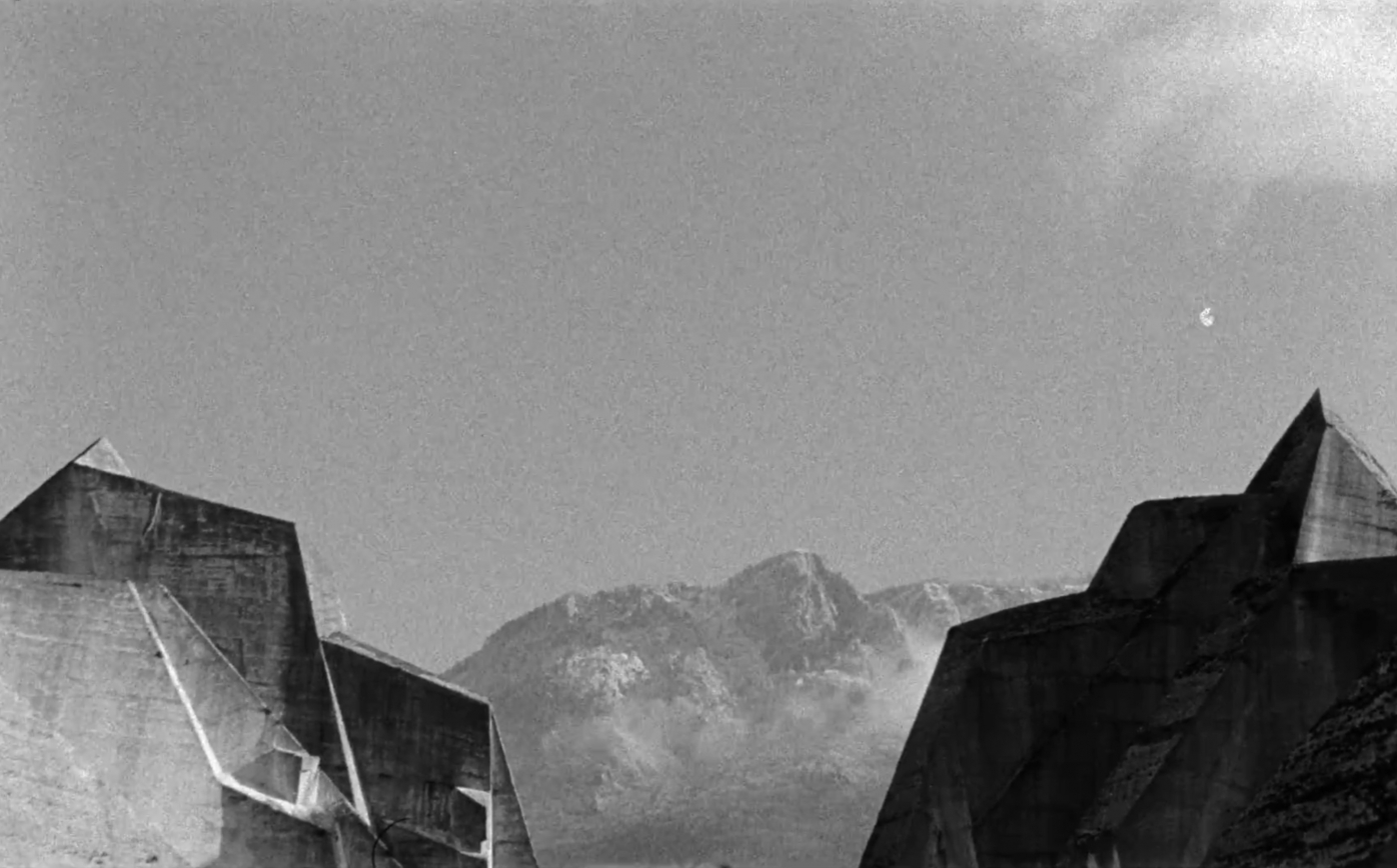 It seems that this idealism, subsequent decay, and almost alien nature must’ve appealed to the Icelandic composer Jóhann Jóhannsson. In his first, and only, feature film Last and First Men he pairs slow-moving cinematic footage of these monuments with an edited narration of the 1930 novel Last and First Men: A Story of the Near and Far Future by Olaf Stapledon. Voiced by Tilda Swinton the story is never explicitly connected to the exquisite black and white 16mm footage, but the conceit, a broadcast back from the final evolution of humans after millions of years of war, interstellar travel, evolution and telepathy and through many cycles of civilisation draws an implicit connection to these real-world symbols of our own ambitions, failings and even moments of transcendence.