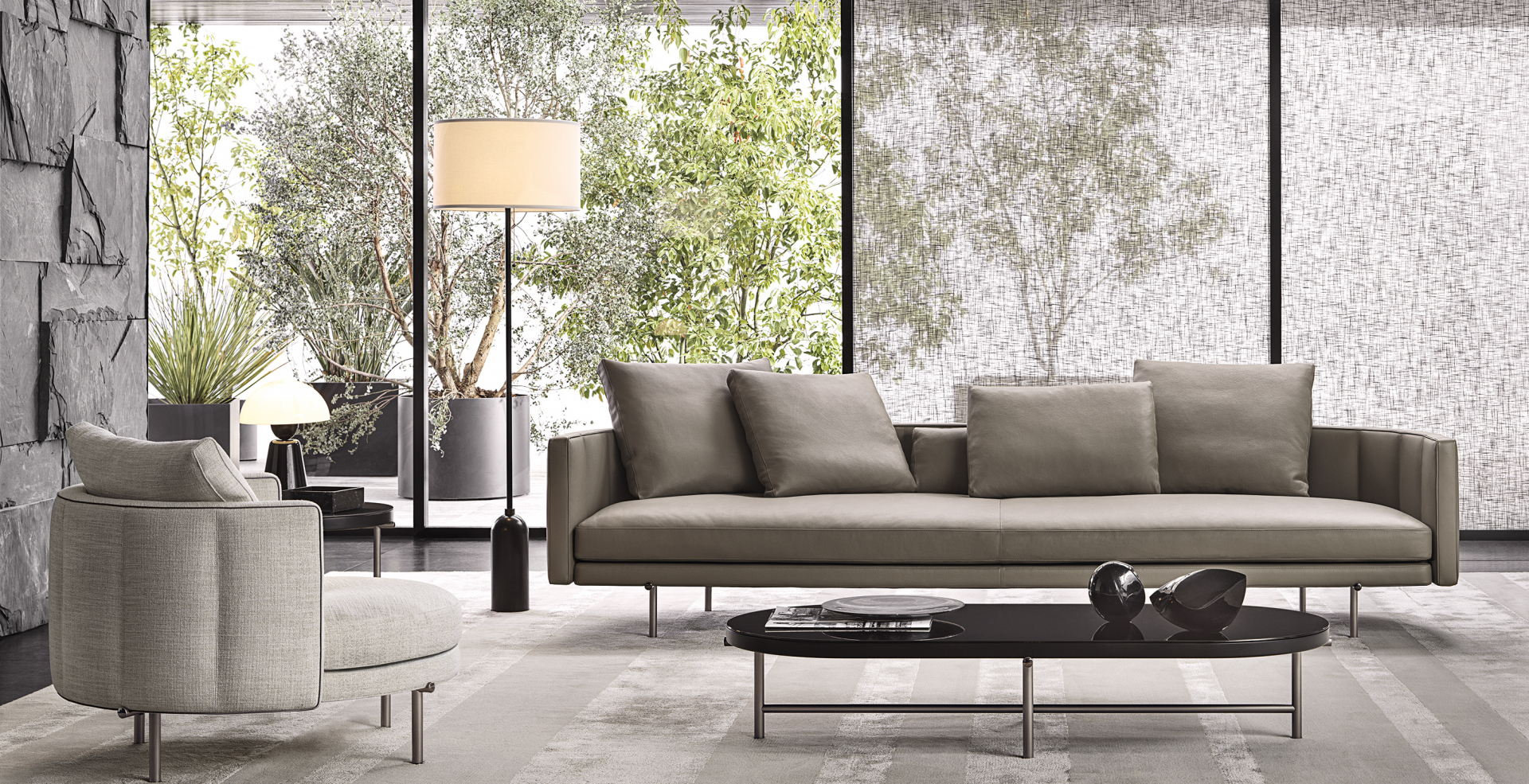 nendo's collaborations with Minotti do not disappoint and the Torii collection is no exception. Airy, with constructive details linked to Japanese tradition, the Torii modular seats play with round edged volumes, thin profiles and the formal simplicity of a thoughtful and rigorous design.